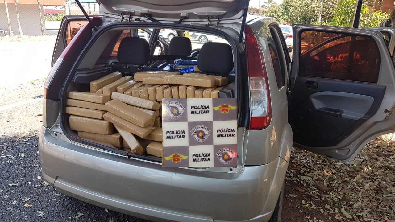 Segundo informações, o 2° sargento Cotrim e soldado Gobi abordaram Ford/Fiesta de Terra Rocha/SP, ocupado apenas pelo motorista, durante a vistoria foi localizado no porta-malas e banco traseiro foram localizados dezenas de tijolões de maconha.