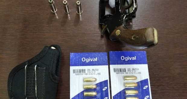 Na residência do indiciado foram localizadas duas cartelas, contendo 10 munições cada, de calibre 25. Diante dos fatos foi dado voz de prisão. S.A.M.J, de 29 anos, foi conduzido ao Plantão Policial, onde foi ratificado a voz de prisão pelo delegado , Dr. Adriano Callsen Alexandrino, ficando à disposição da justiça.