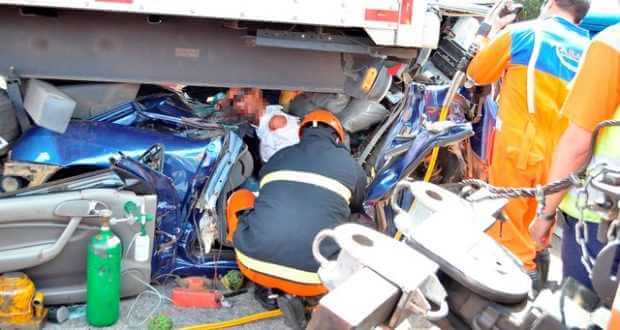 Um homem de 31 anos sobreviveu a um gravíssimo acidente de trânsito nesta terça-feira, 02-05-2017, após o carro que ele dirigia ficar prensado entre duas carretas, na BR-116, em Vitória da Conquista, sudoeste da Bahia.