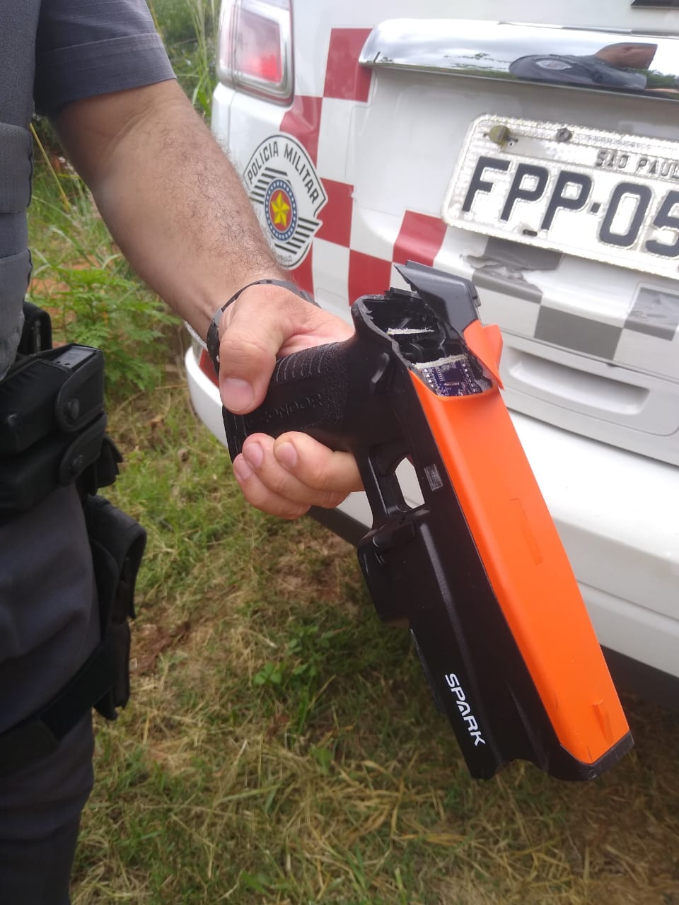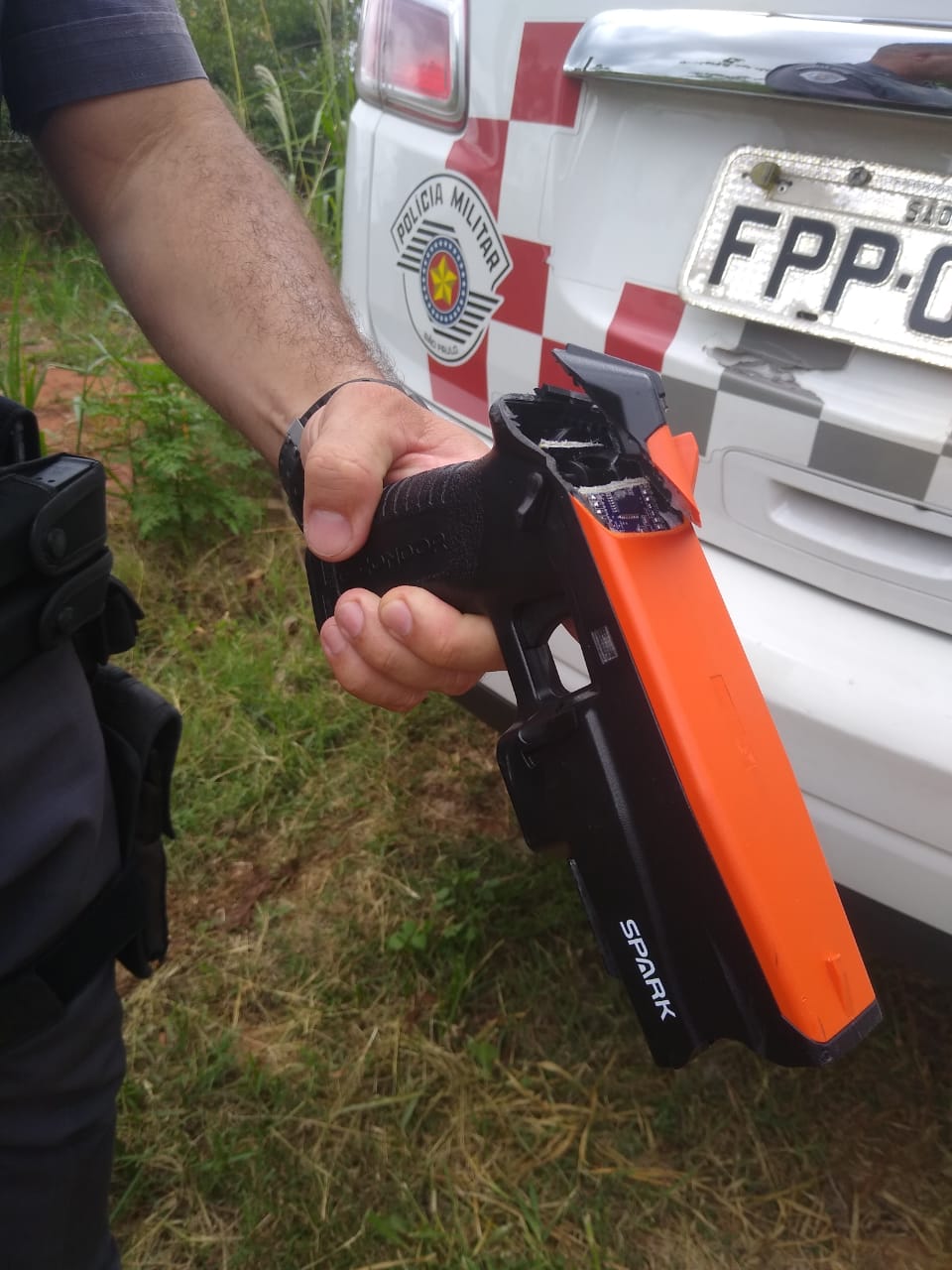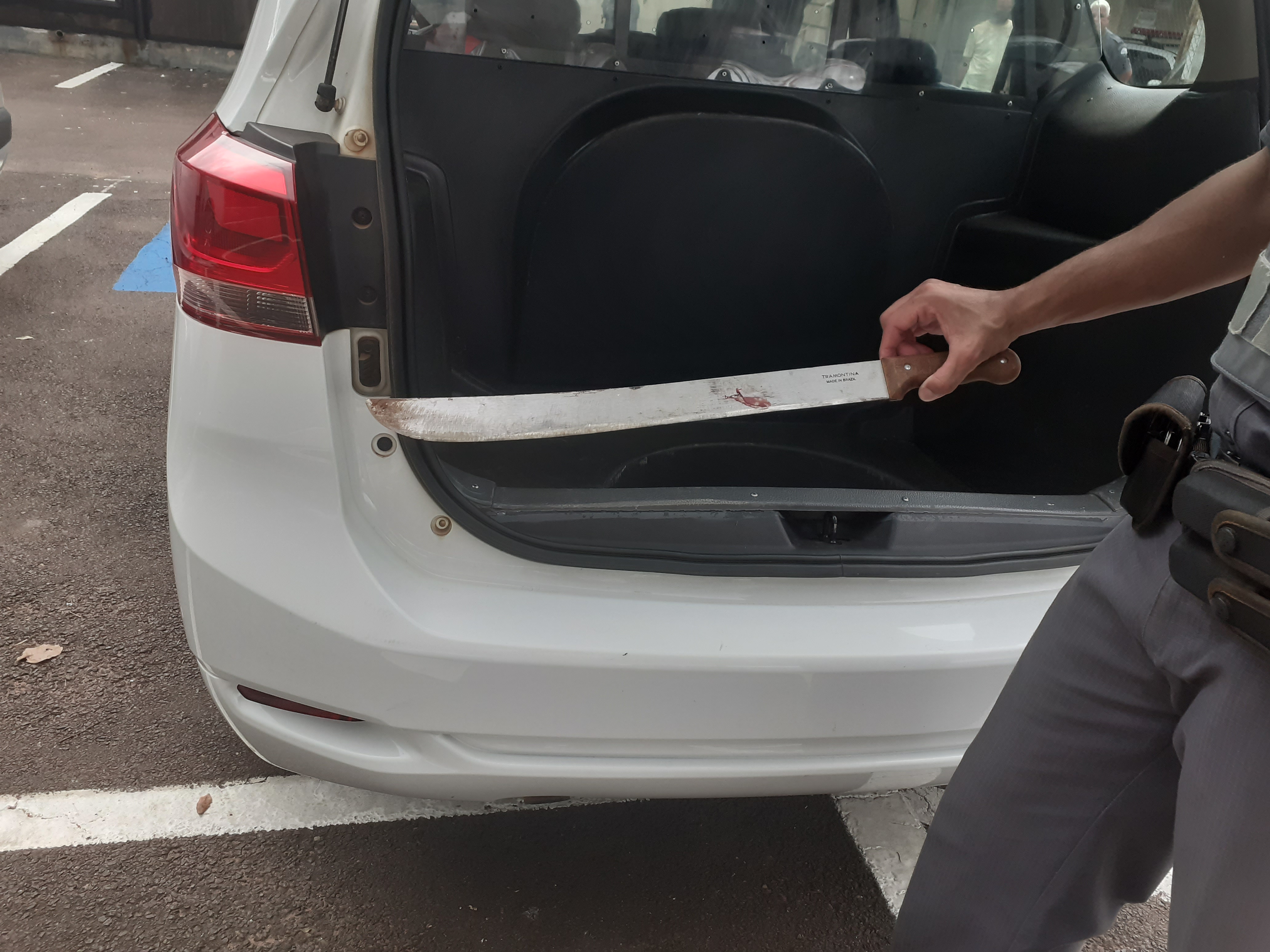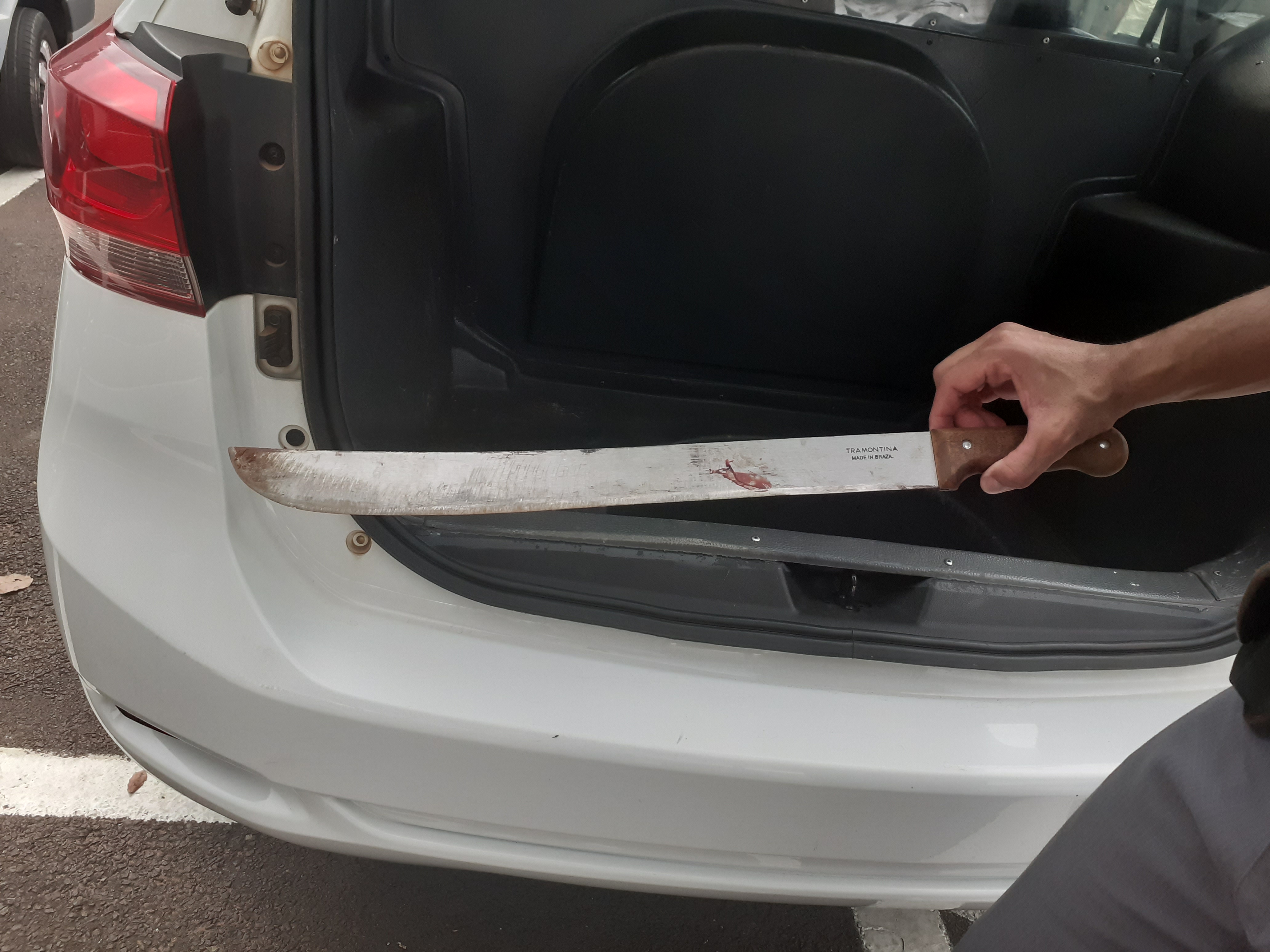 Segundo informações, por volta das 12:00 a PM foi acionada para o local e encontrou o indivíduo em surto psicótico. O mesmo dizia que queria dar fim na própria vida. O homem estaria ingerindo bebida alcoólica e armado com um grande facão. Os PMs teriam tentado convencer ele para se entregar, mas sem êxito. Em um dado momento a PM usou a arma de choque para tentar conter o mesmo. Ele não caiu. O SAMU foi acionado e a Unidade de Suporte Avançado ( USA) foi para o local. O indivíduo já havia feito pequenos cortes nos pulsos. Não aceitava ser socorrido. Com o facão ele desferiu um corte na lataria da viatura da PM e acertou também a arma de choque ( Spark). Com o facão correu em direção a viatura do SAMU. Os profissionais conseguiram adentrar a viatura e fecharam as portas. O sujeito cortou os pneus da viatura do SAMU e também danificou o vidro da porta do passageiro. Um policial efetuou um disparo de arma de fogo nas nádegas e o indivíduo caiu ao solo. O mesmo foi algemado e colocado em uma viatura básica do SAMU e encaminhado à Santa Casa. A Polícia Científica foi acionada e a ocorrência apresentada no Plantão Policial.