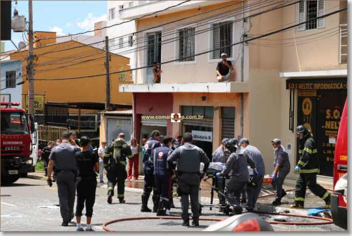Segundo informações, populares escutaram uma forte explosão e verificaram que um sobrado estava pegando fogo. O Corpo de Bombeiro, SAMU e PM foram acionados e encontraram o homem com graves ferimentos. De acordo com o sub -tenente Robotis, o homem teria amarrado uma corda no pescoço, depois no botijão de gás e possivelmente causado a explosão. Testemunhas nos relataram que a vítima mora no local. A explosão foi tamanha que atingiu casa e comércios da região, vindo atingir levemente outras duas pessoas.