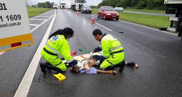 Na manhã deste sábado (30-12-2017), na Rodovia Washington Luiz, Km 267, próximo ao Bairro Cecap, em frente ao Posto Bambina, no sentido capital – interior em Araraquara-SP, um homem de 45 anos foi atropelado.