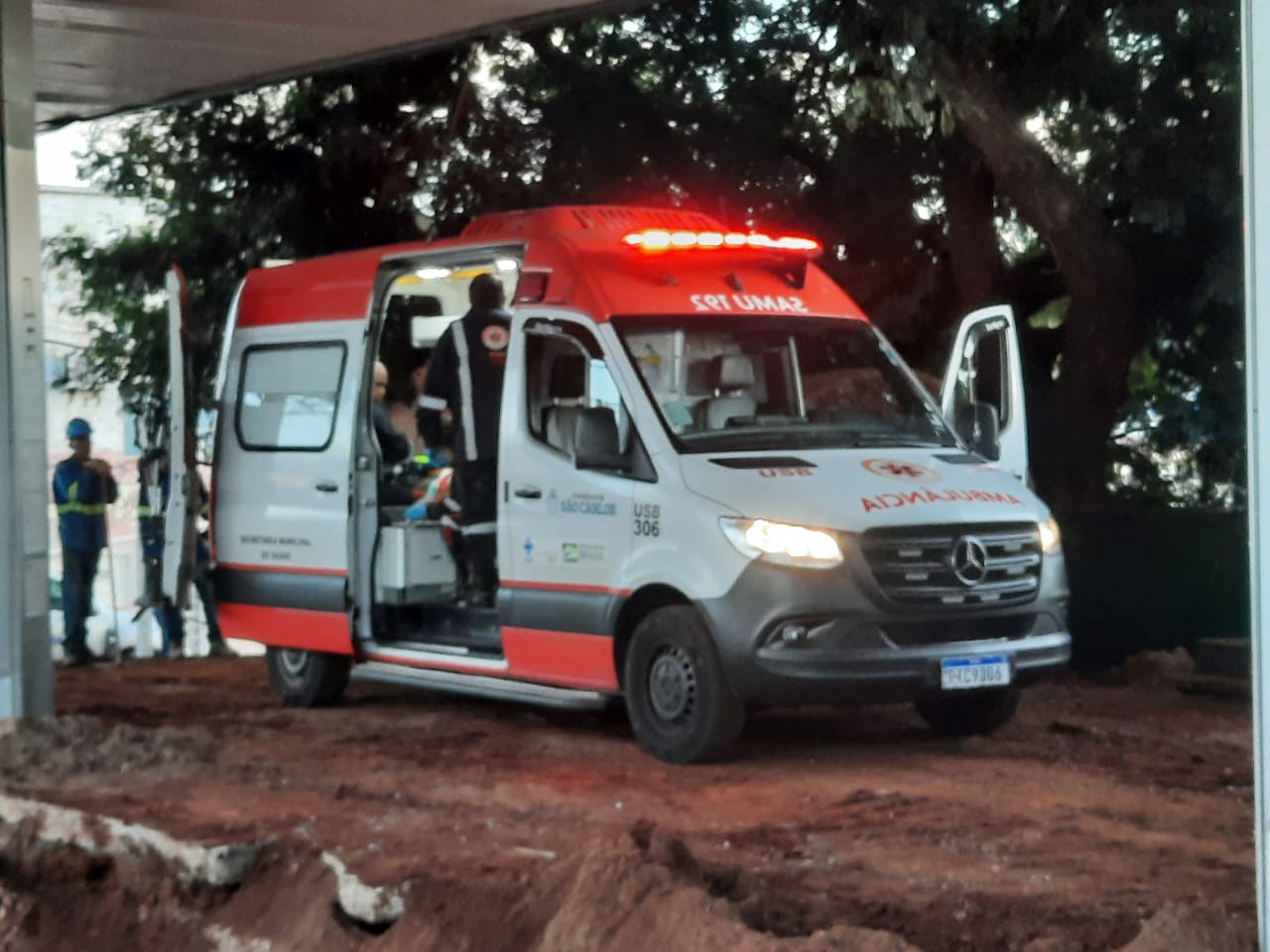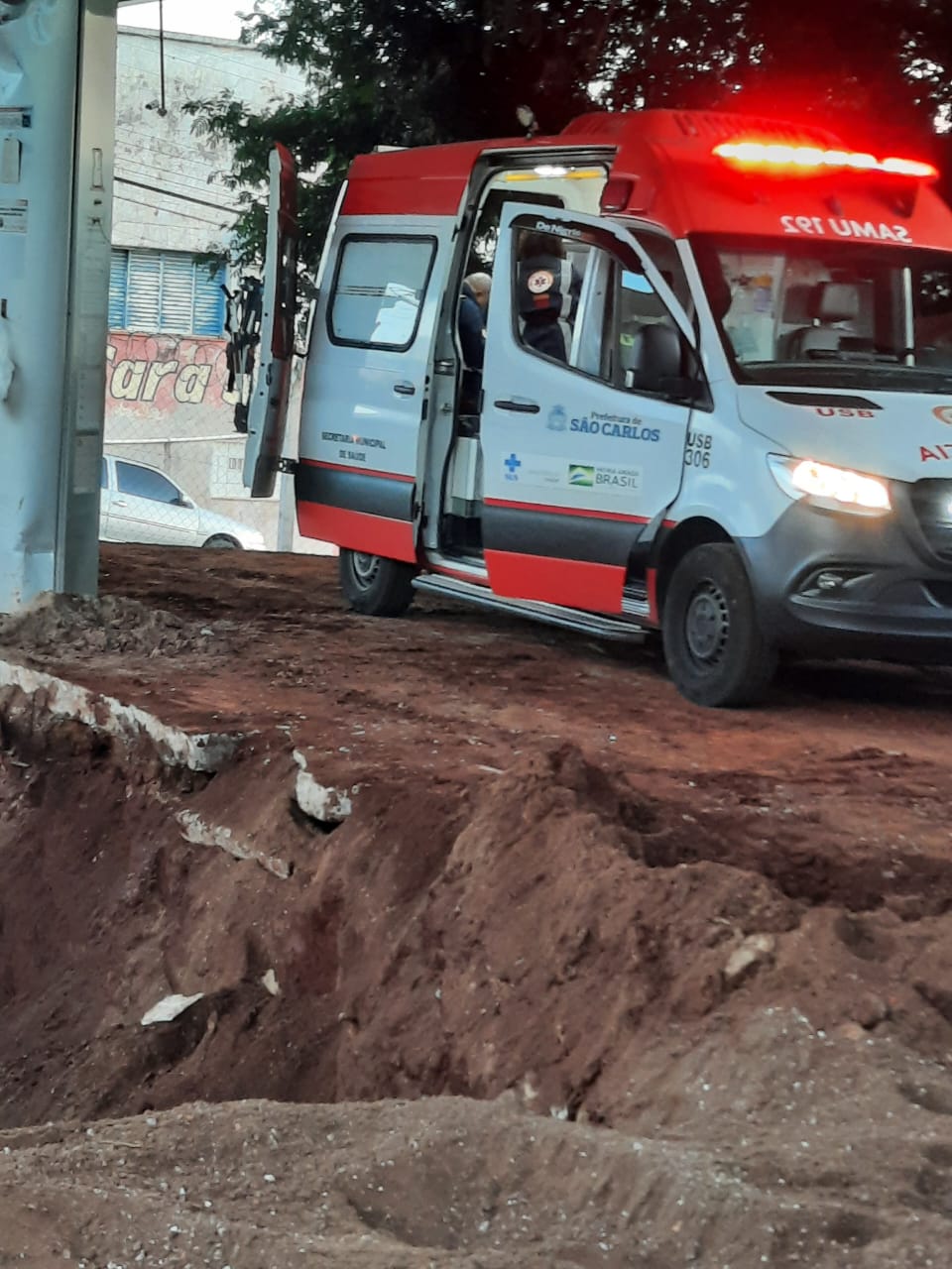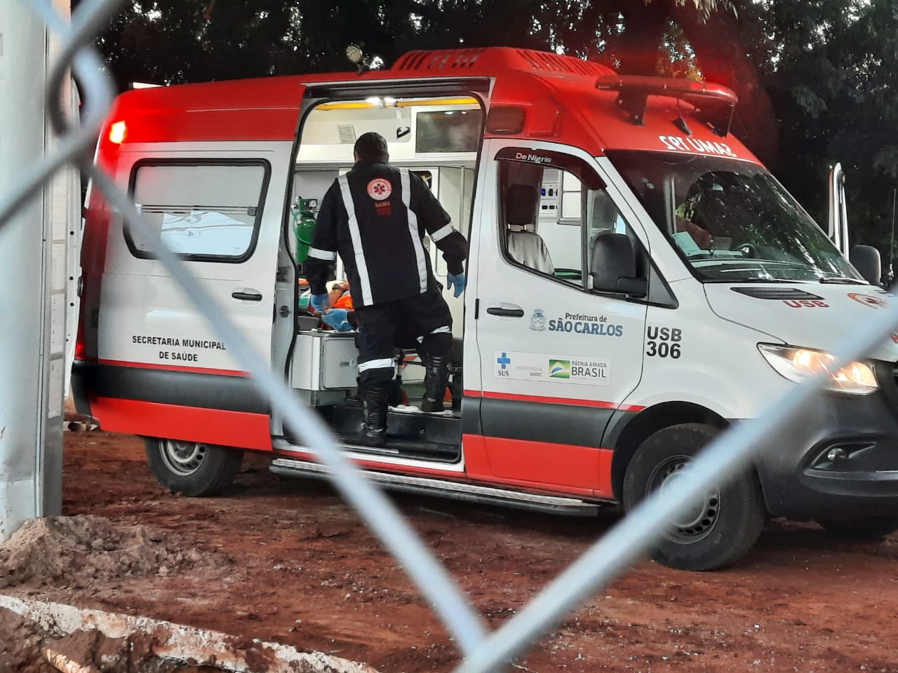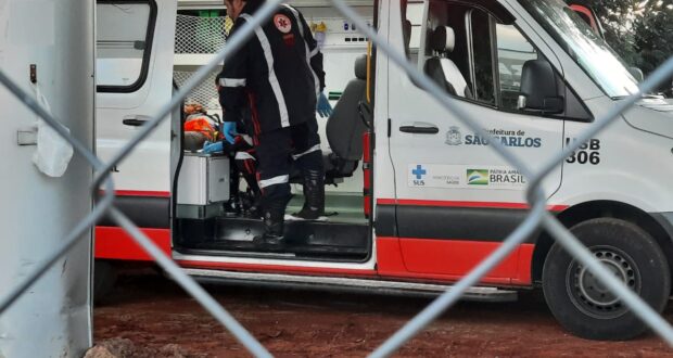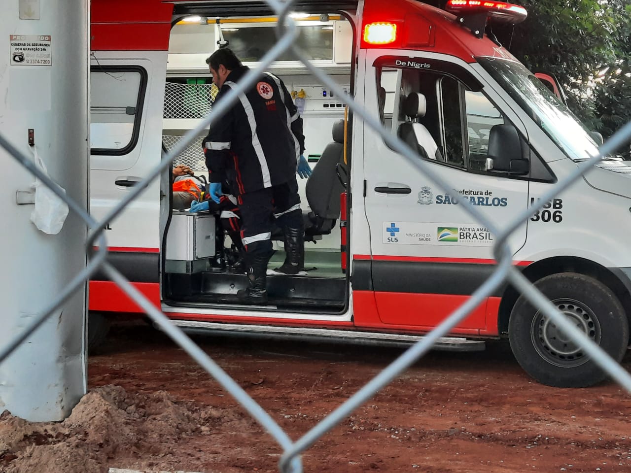 Um homem ficou levemente ferido nesta tarde de quarta-feira, 11-06-2025, em uma obra na Av. São Carlos, região da Praça Itália, São Carlos-SP.