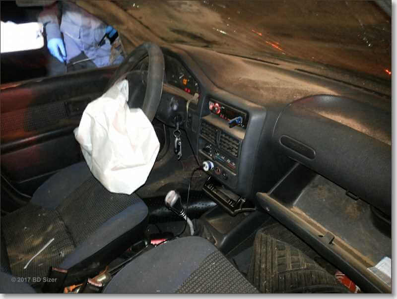 Um motorista ficou ferido ao se envolver em um acidente de trânsito no início da noite deste domingo, 04-06-2017, no km 229 da rodovia Washington Luís, próximo ao trevo da Avenida Getúlio Vargas, São Carlos-SP.