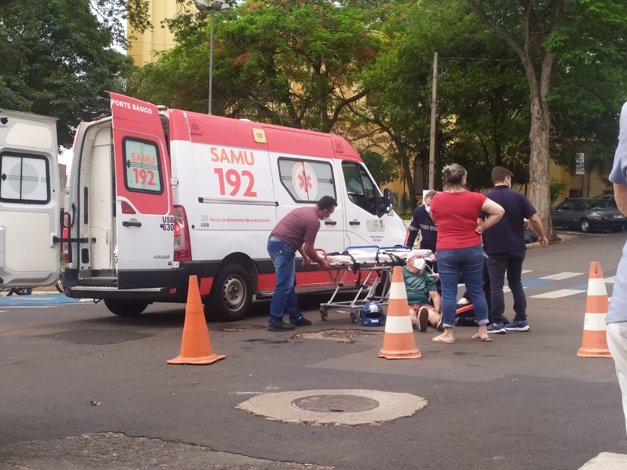 Um homem ficou ferido nesta tarde de terça-feira, 17/11/2020 no cruzamento das Ruas José Bonifácio, com General Osório, Centro de São Carlos.