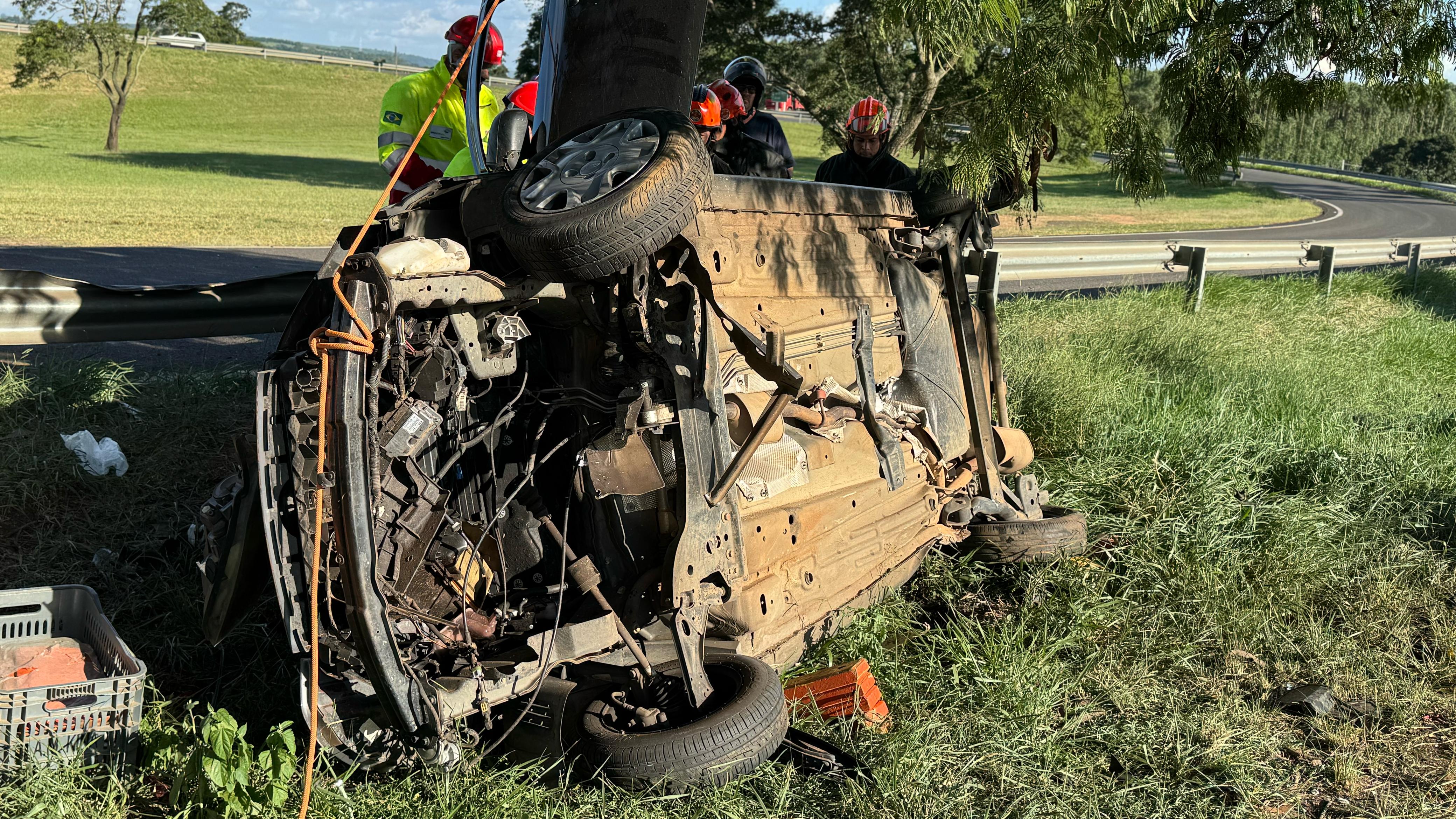Um homem escapou da morte nesta tarde de quarta-feira, 5 de março de 2025, ao perder o controle de seu carro e colidir violentamente em uma árvore na curva de acesso da rodovia Washington Luís, com a rodovia SP-215, São Carlos-SP. O acidente ocorreu por volta das 16h20.