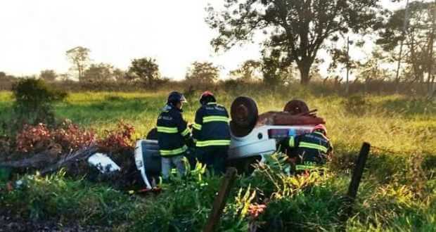 Um Gol com duas crianças, um homem e uma mulher capotou nesta manhã de domingo, 25-06-2017, na estrada de terra próximo à torre da TV Cidade, em Ibitinga-SP.