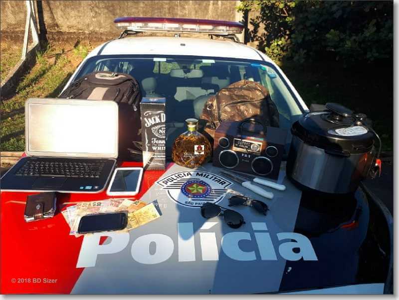 Segundo boletim de ocorrência, os policiais, sargento Adans e soldado Pereira estavam em patrulhamento preventivo quando se depararam com o Sandano. Este carregava uma mochila e  foi abordado. Dentro da mesma foram localizados alguns objetos. Ele foi indagado e disse onde havia furtado os produtos. O averiguado mostrou o local onde teria escondido mais alguns objetos. Ele indicou  a residência e os policiais fizeram contato com a vítima, a qual reconheceu os produtos como sendo seus. O averiguado disse que pulou o muro da casa para praticar o delito. Diante da situação foi encaminhado ao Plantão Policial onde foi autuado em flagrante por furto qualificado e recolhido ao Centro de Triagem de São Carlos.