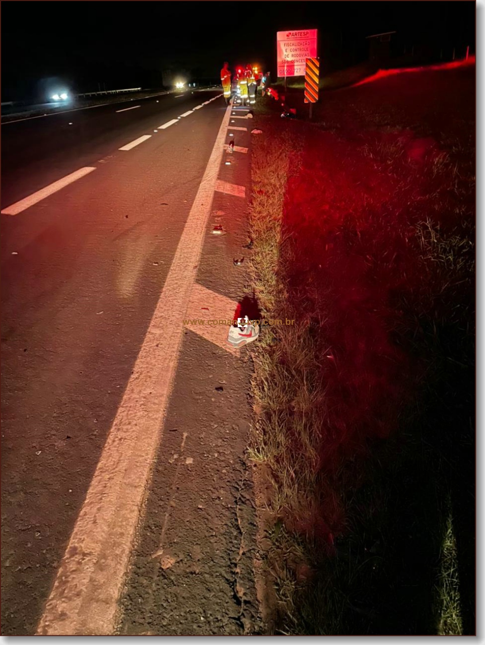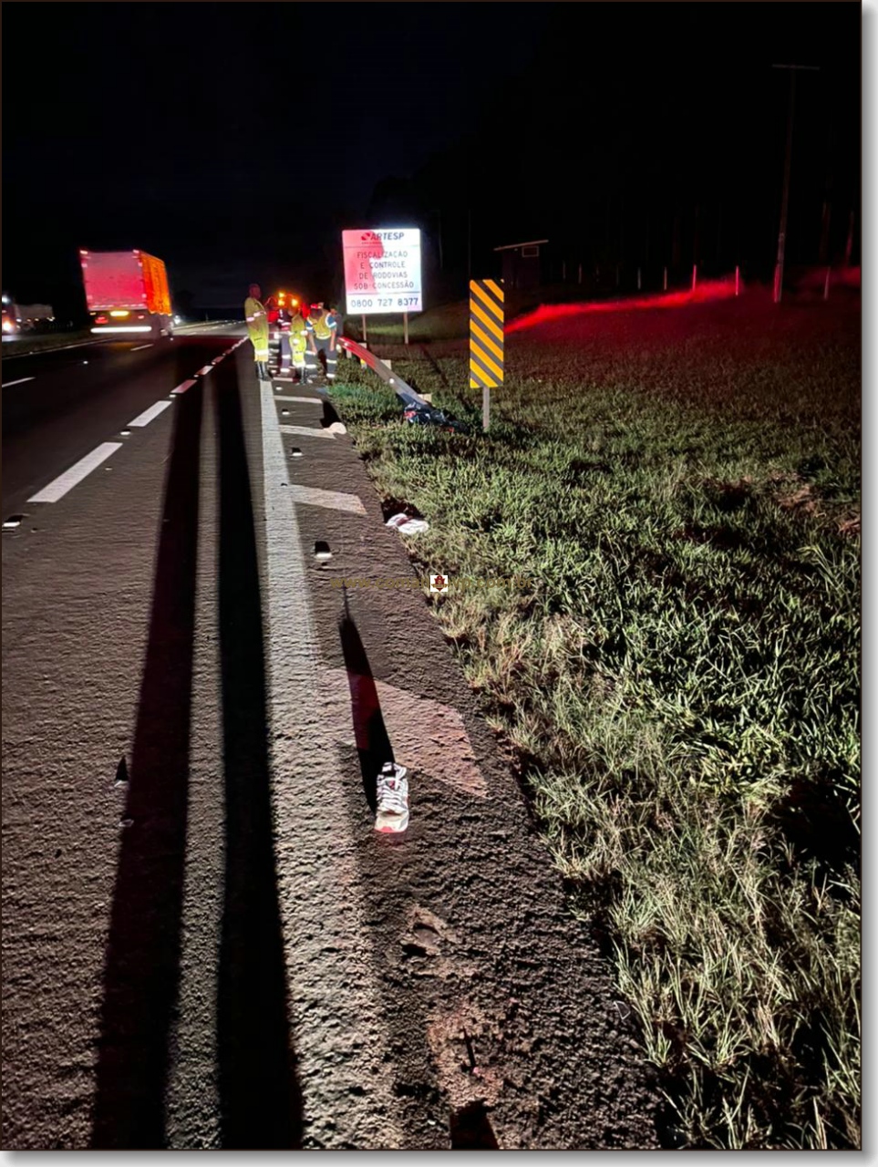 Um homem de 32 anos morreu na noite de quinta-feira, 16-12-2021, ao ser atropelado por um veículo Renault/Master no km 227 da rodovia Washington Luís, São Carlos-SP, região da alça de acesso da SP-215.