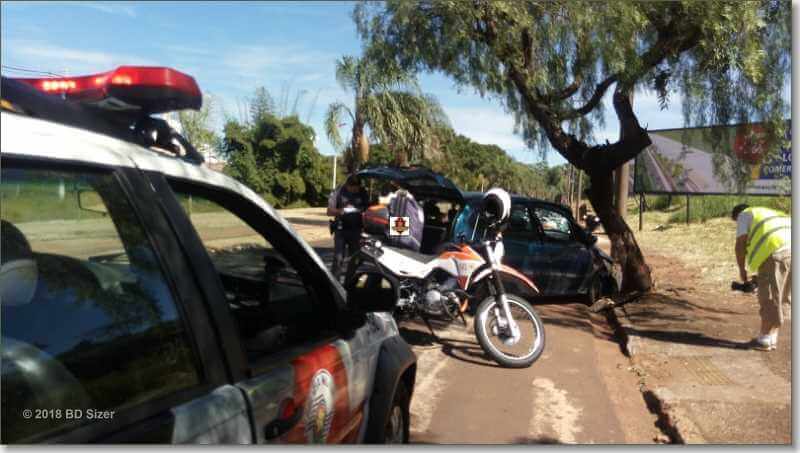 Um senhor de 55 anos colidiu seu carro em uma árvore na manhã deste sábado, 21 de abril de 2018, na Avenida Comendador Alfredo Maffei, região do SESC, São Carlos-SP.