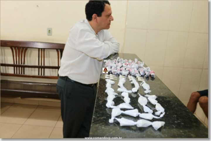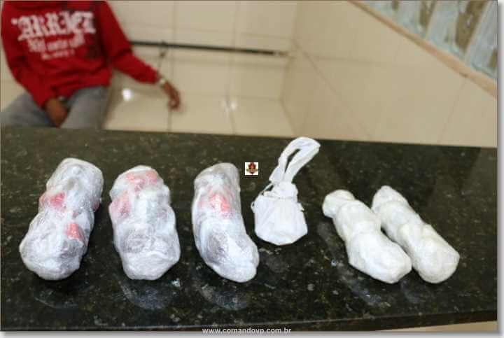 Segundo informações, uma equipe composta pelo sargento Machionni, soldados Ivan e Márlon estava em patrulhamento preventivo pelo referido bairro quando se deparou com um indivíduo, o qual teria dispensado uma sacola branca. O mesmo foi abordado e no interior, segundo a PM, continha, crack, cocaína e maconha. O detido foi conduzido ao Plantão Policial, mas até o fechamento desta matéria sua situação não havia sido definida pelo delegado, Dr. Caio Iberê Gobato.