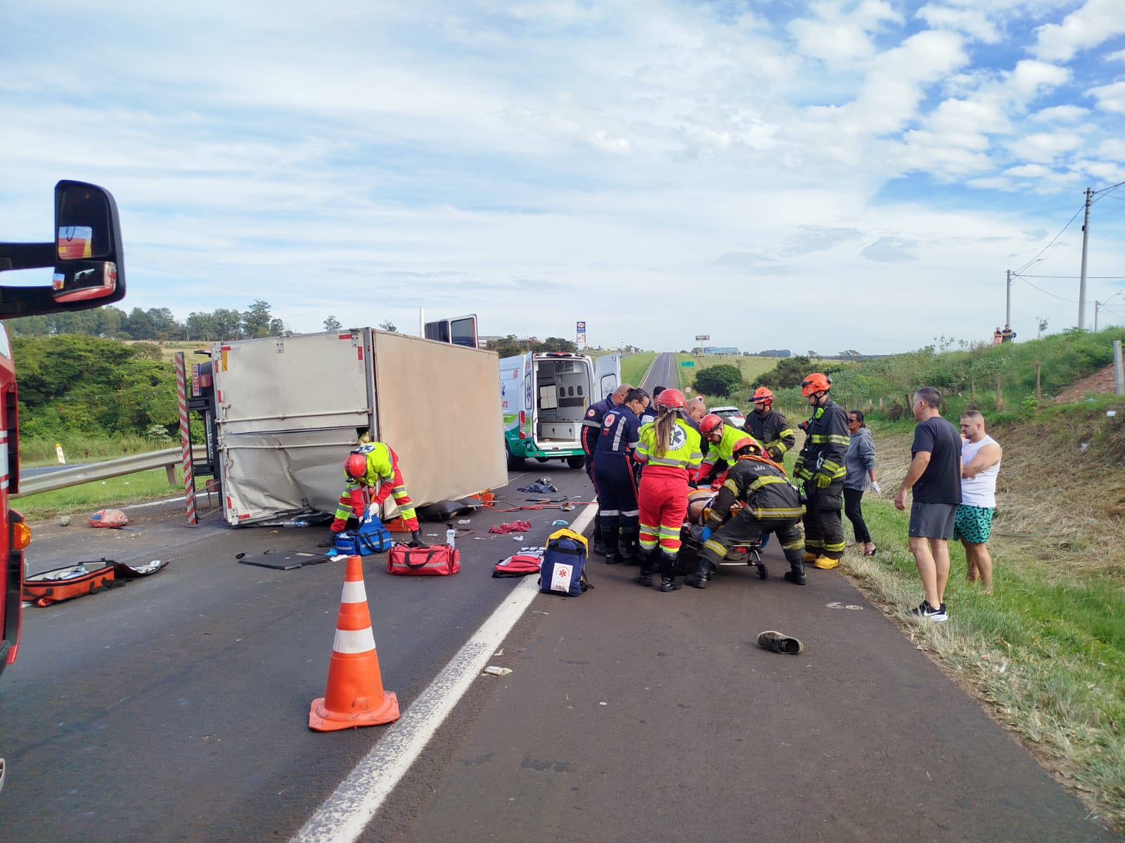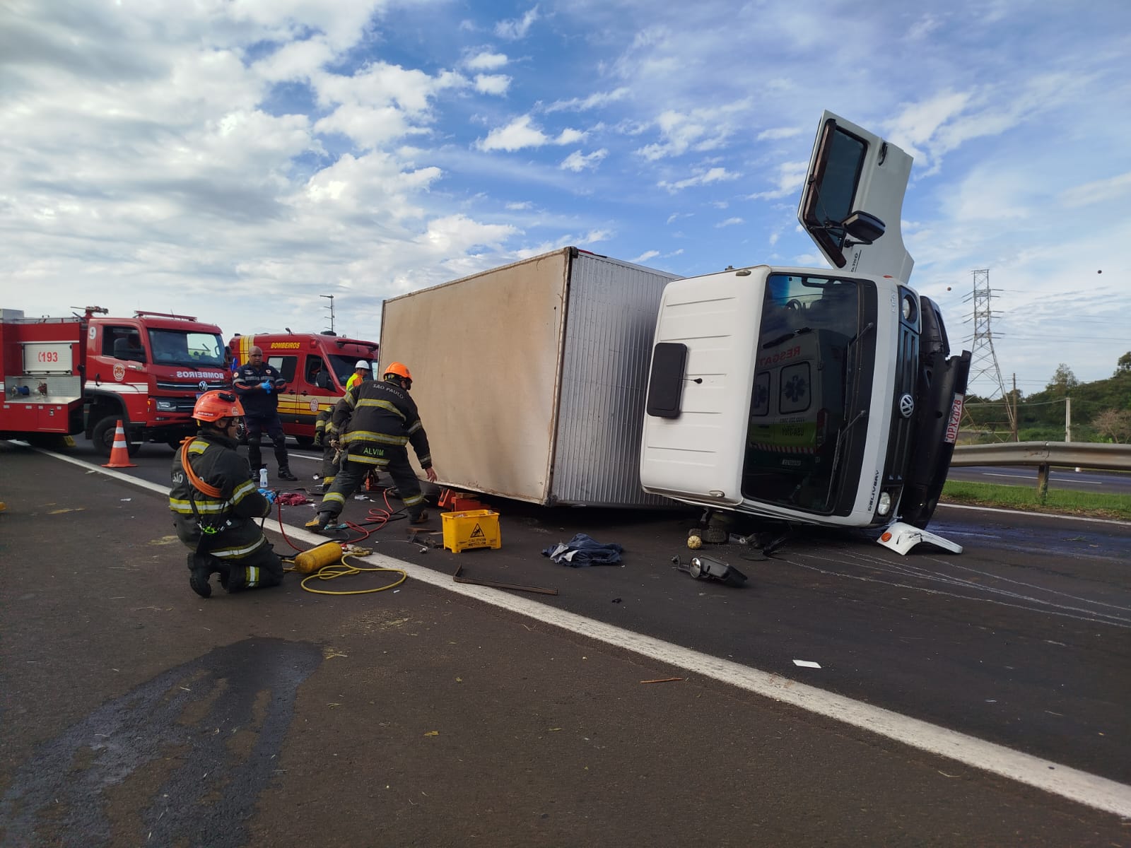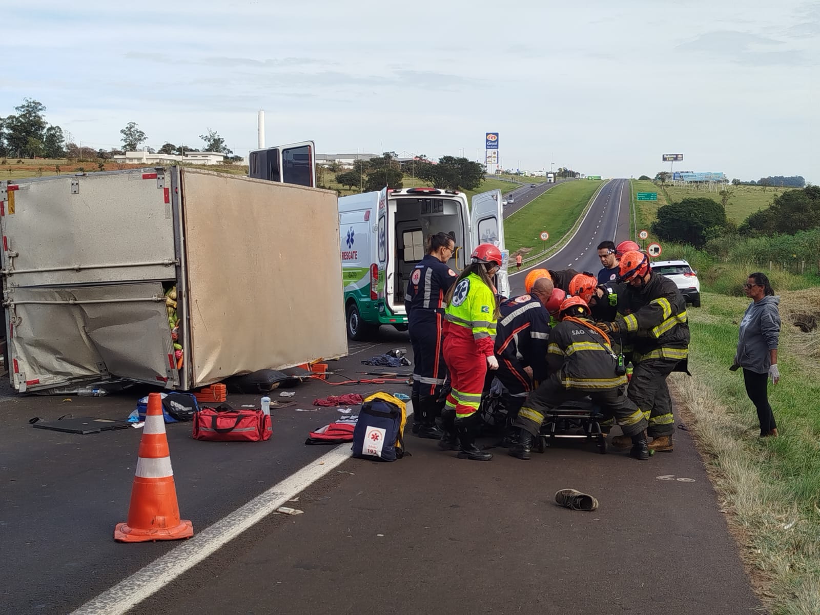 De acordo com informações preliminares, um caminhão tombou e o condutor ficou preso debaixo. O SAMU, o Corpo de Bombeiros e a concessionária foram acionados e a vítima foi retirada e encaminhada para a Santa Casa. Ainda de acordo com informações preliminares, a vítima sofreu esmagamento dos membros inferiores. A Polícia Militar Rodoviária esteve no local t tomou todas as medidas cabíveis.
