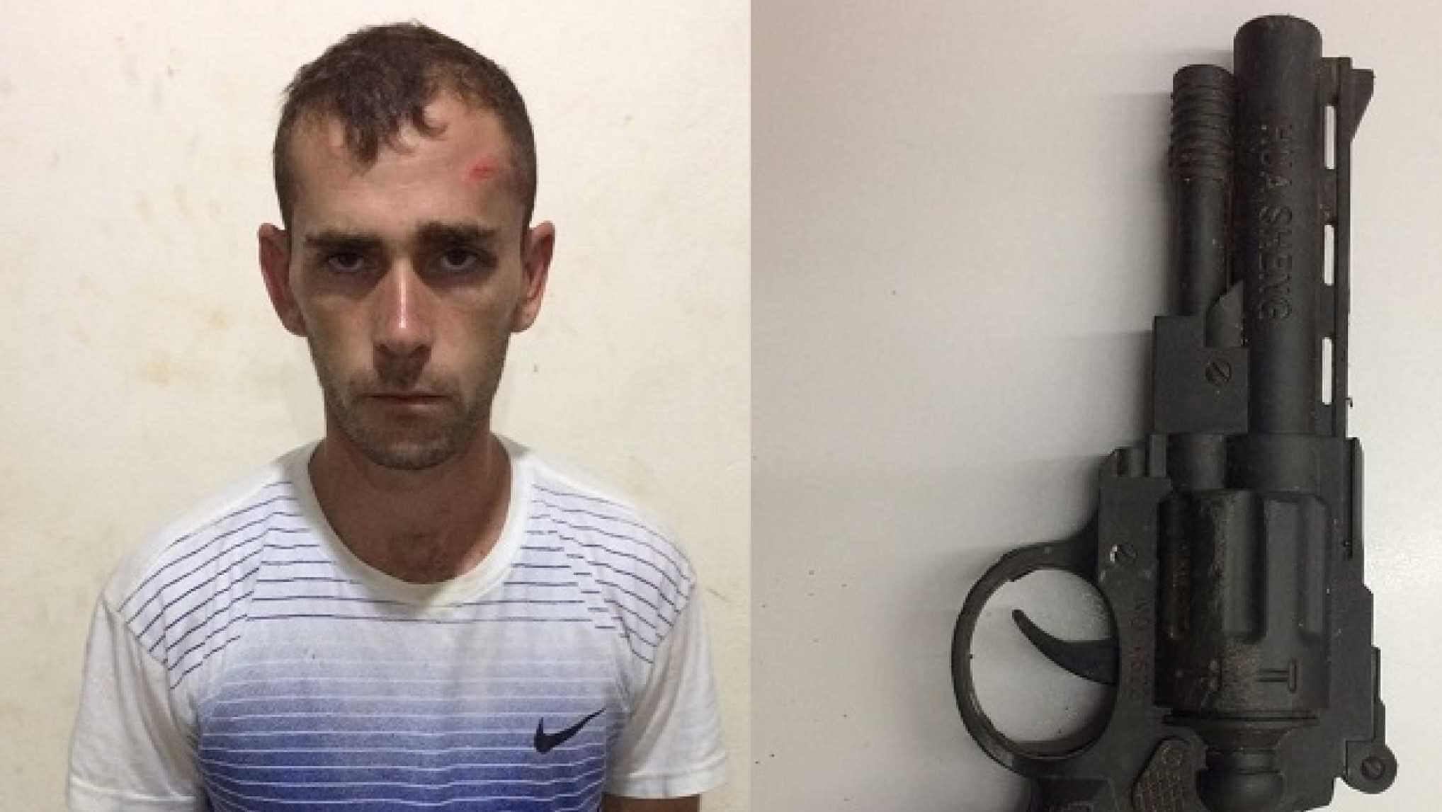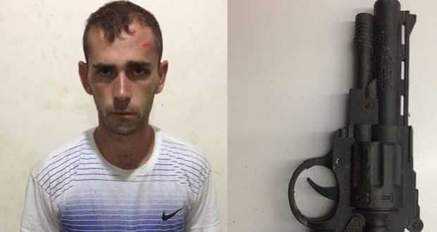 Assustado o criminoso que tentou fugir, mas trombou com uma lixeira e acabou preso. Ele foi reconhecido em outros roubos corridos na terça-feira (06) em uma farmácia e uma sorveteria. Em todos os roubos, segundo a PM, ele usou a mesma arma que simula a verdadeira. A Polícia Militar foi acionada em apoio ao policial e encaminhou o sujeito à delegacia da PC, onde foi feito flagrante, sendo encaminhado para a Cadeia Pública de Santa Ernestina.