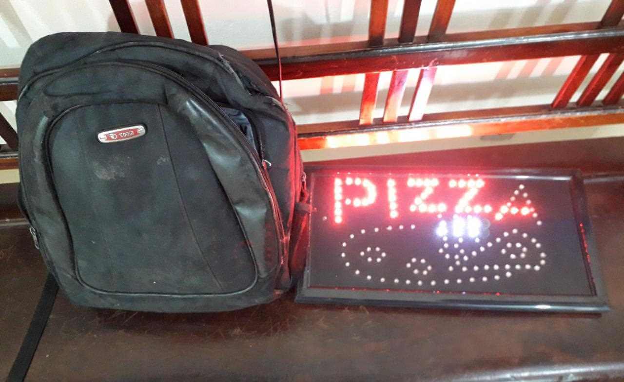 A equipe retornou ao local dos fatos , onde foi localizado a bolsa do indiciado já com um letreiro digital em seu interior.