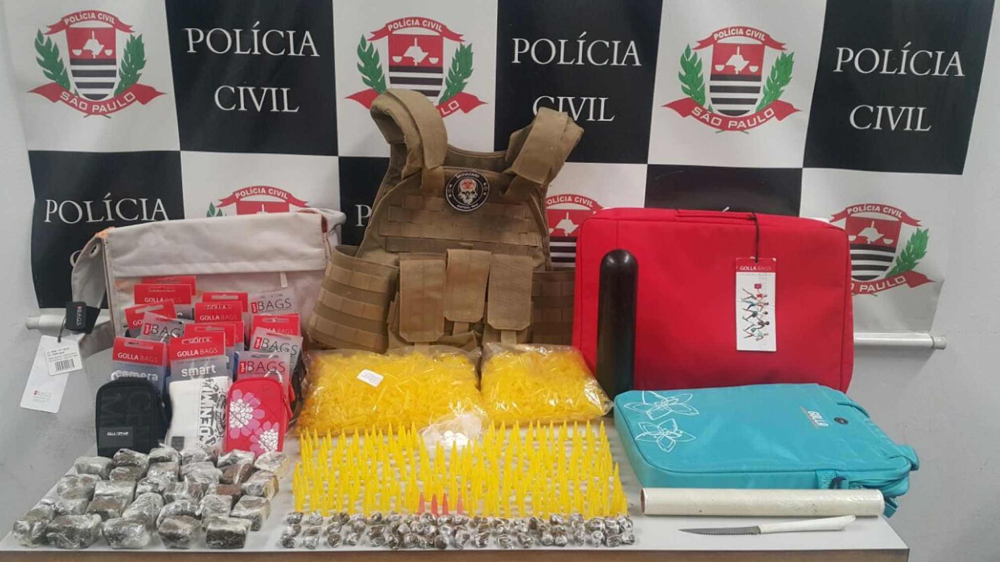 Em buscas, foram encontrados 274 pinos plásticos com cocaína, além de outros 1620 pinos vazios, 28 tabletes e 58 trouxinhas de maconha.