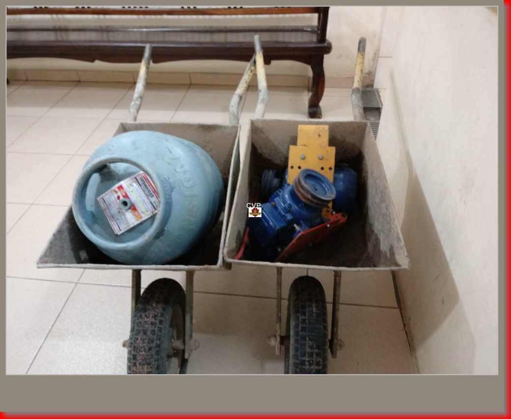 Segundo informações, eram por volta das 2:00, os policiais, cabo Fregolente e soldado Jonathan estavam em patrulhamento quando avistaram dois indivíduos carregando dois carrinhos de mão (carriola). Os homens saíram correndo e abandonaram os carrinhos carregados com um botijão de gás, dois motores elétricos, entre outros objetos. Segundo a PM, os homens adentraram em uma mata e não foram detidos. Os objetos foram encaminhados ao Plantão Policial, onde foram apreendidos.