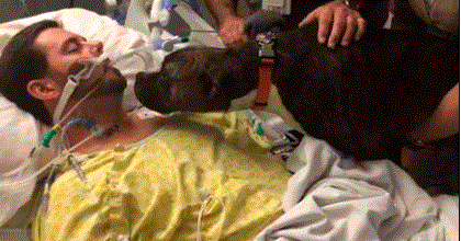 Um hospital da Califórnia autorizou a cadelinha Mollie dar um último adeus ao seu dono, Ryan Jessen, de 33 anos. Ryan teve uma hemorragia cerebral e seu estado era irreversível.