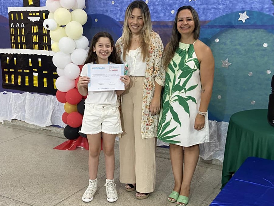 A diretora Regina dos Santos Barretos Dorice e a coordenadora pedagógica Fátima Regina Pastori Vilela tiveram a honra em premiar os alunos com medalhas de ouro, prata e bronze. “Fomos a única escola municipal a participar com 37 alunos de 2º anos e 47 alunos de 3º anos, premiando 17 alunos. Sendo que 1 aluno de 2º ano com medalha de prata. Já no 3º ano, 9 alunos com medalhas de bronze, 5 alunos com medalha de prata e 2 alunos com medalha de ouro”, contou a diretora Regina.