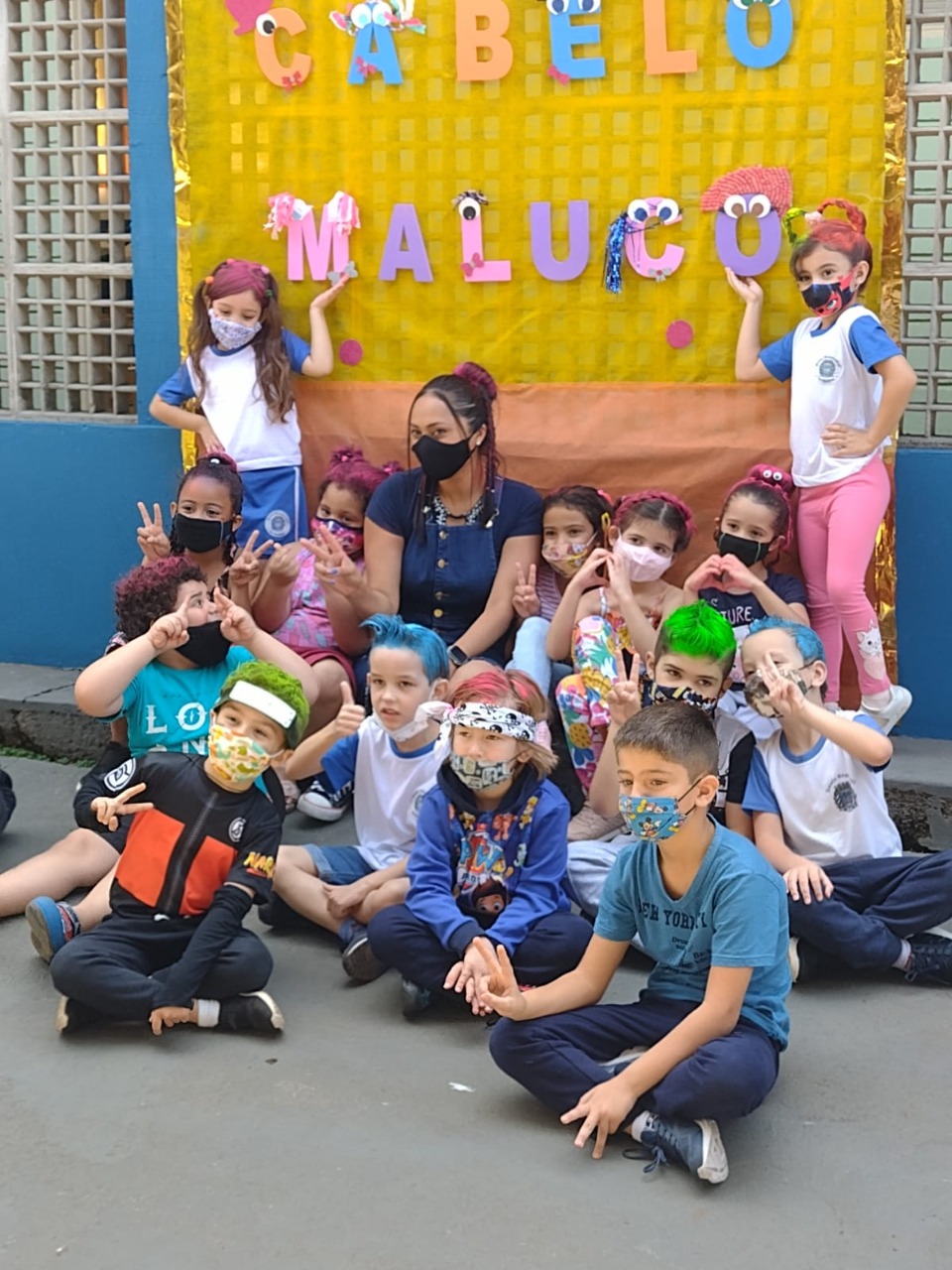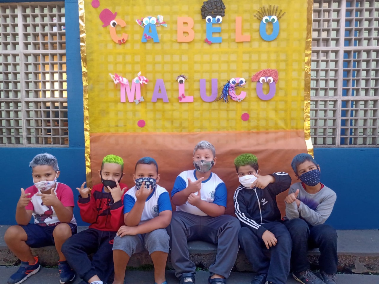 Para encerrar o mês de outubro a E.M. Jovina de Paula Pessente realizou o Dia do Cabelo Maluco com muita música, dança, brincadeiras, pipoca e algodão-doce.