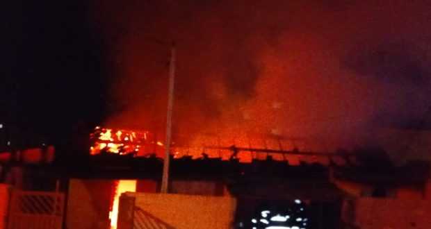 Duas casas foram destruídas por um incêndio na noite de segunda-feira, 24-06-2019, na rua Santos Dumont, bairro Vila Marina, São Carlos-SP.