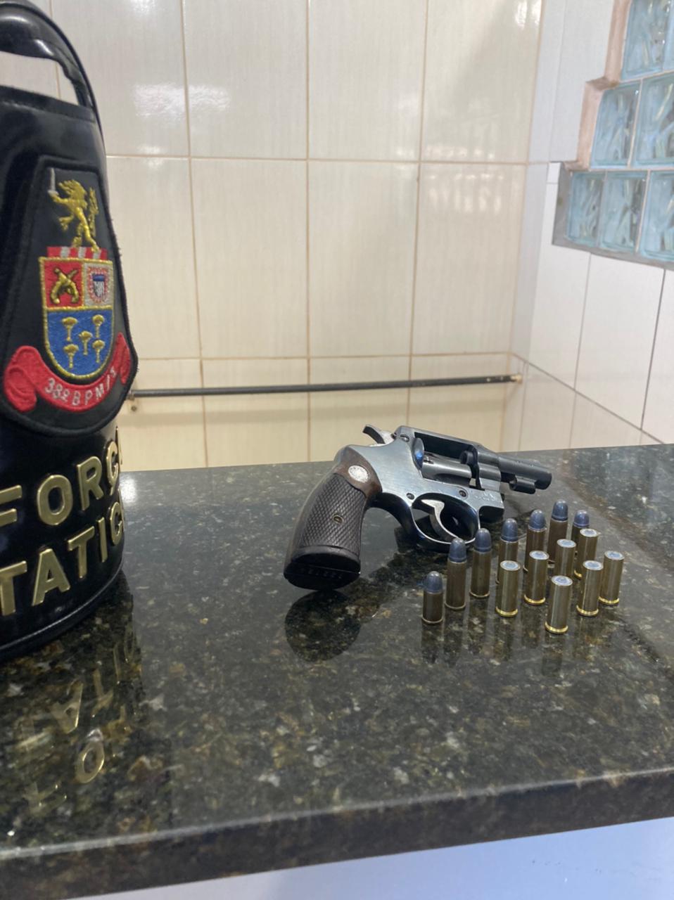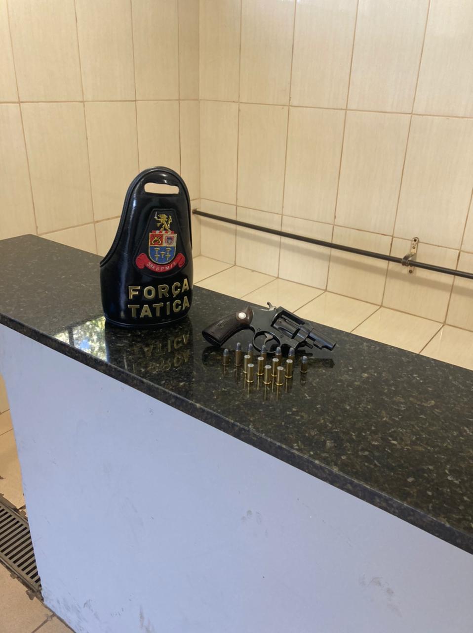 Segundo informações, alguns dias atrás este idoso em poder de uma arma de fogo havia ameaçando uma mulher . Nesta manhã a Força Tática esteve no local,deteve o sujeito e apreendeu a arma. O mesmo foi conduzido à Central de Flagrantes, autuou pelo delegado e liberado após pagamento de fiança.