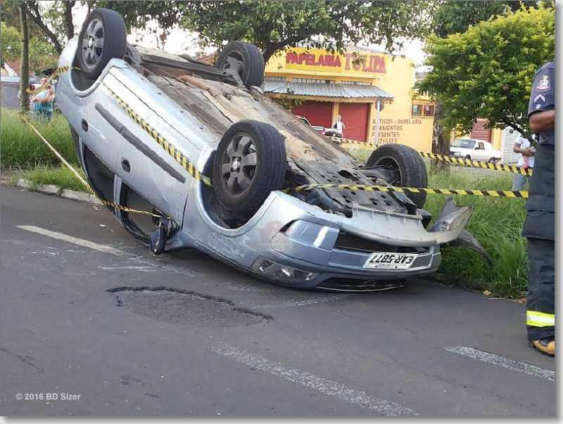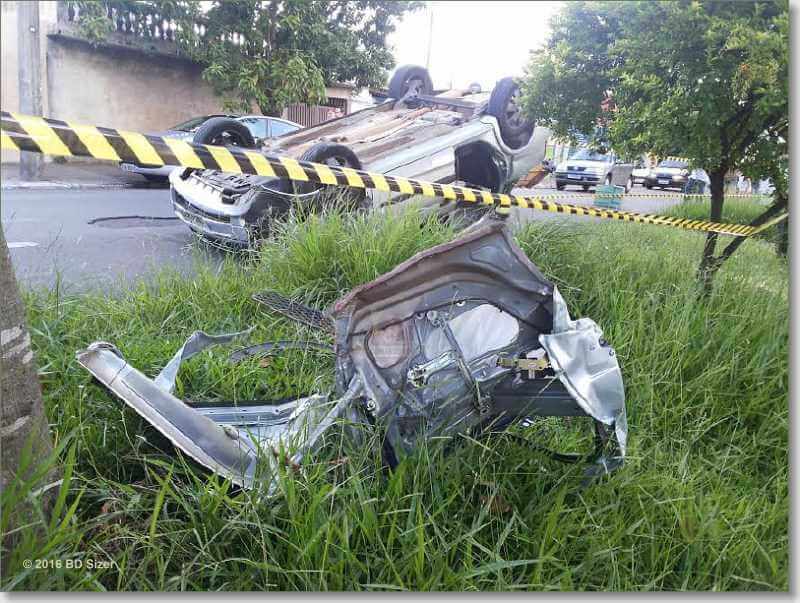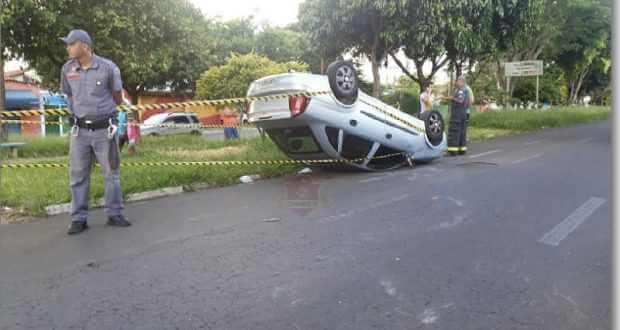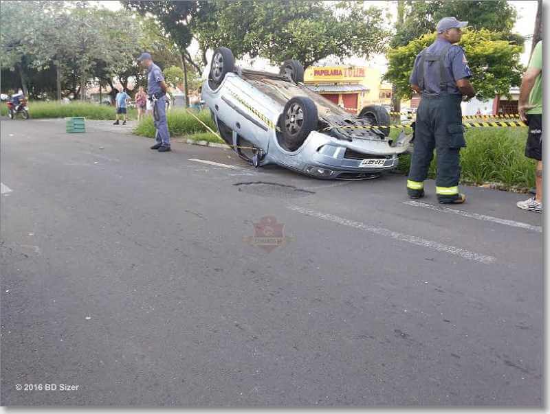 Um veículo Corsa capotou no inicio da noite desta sexta-feira, 30-12-2016, na Avenida Henrique Gregori, sentido shopping, São Carlos-SP