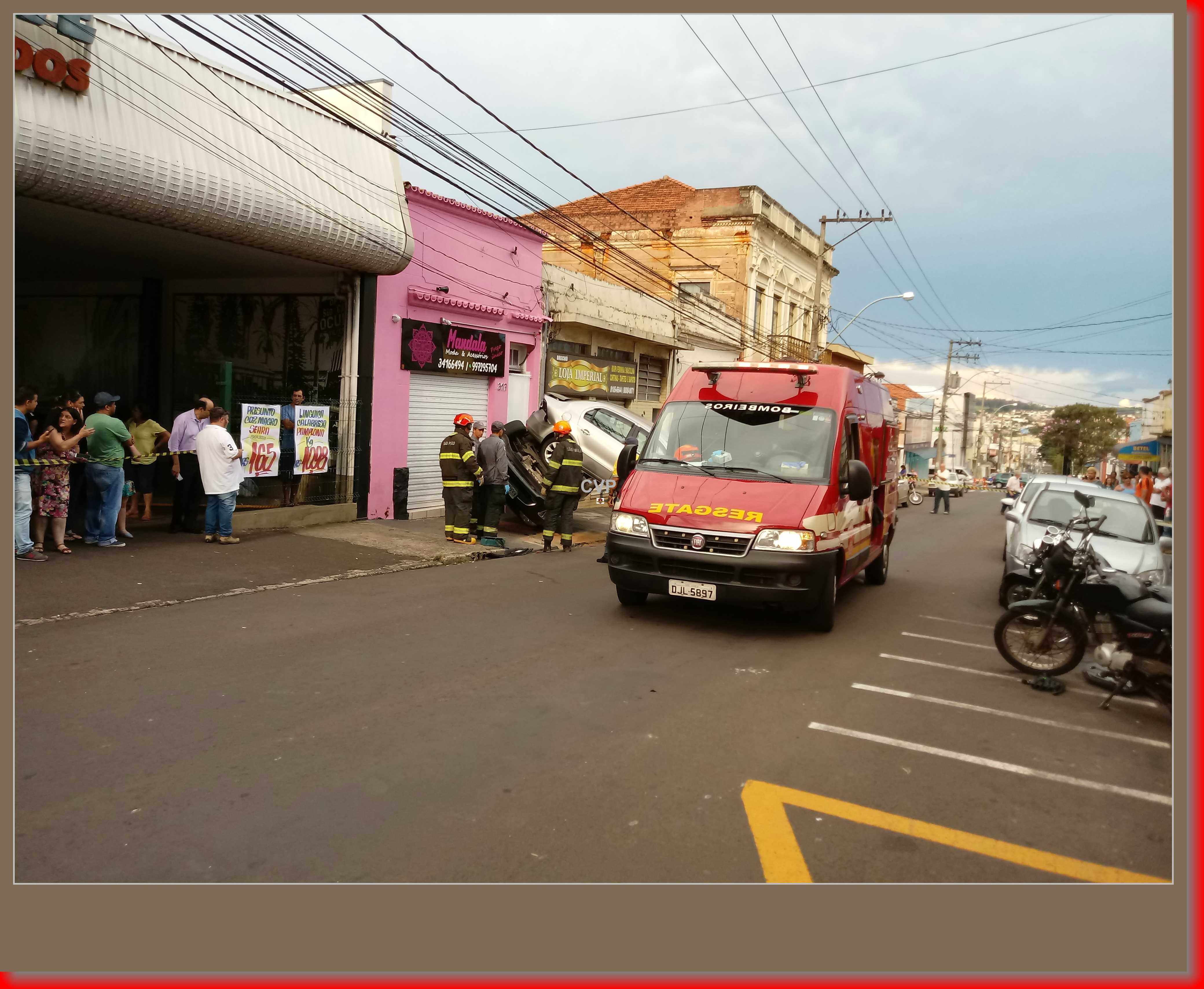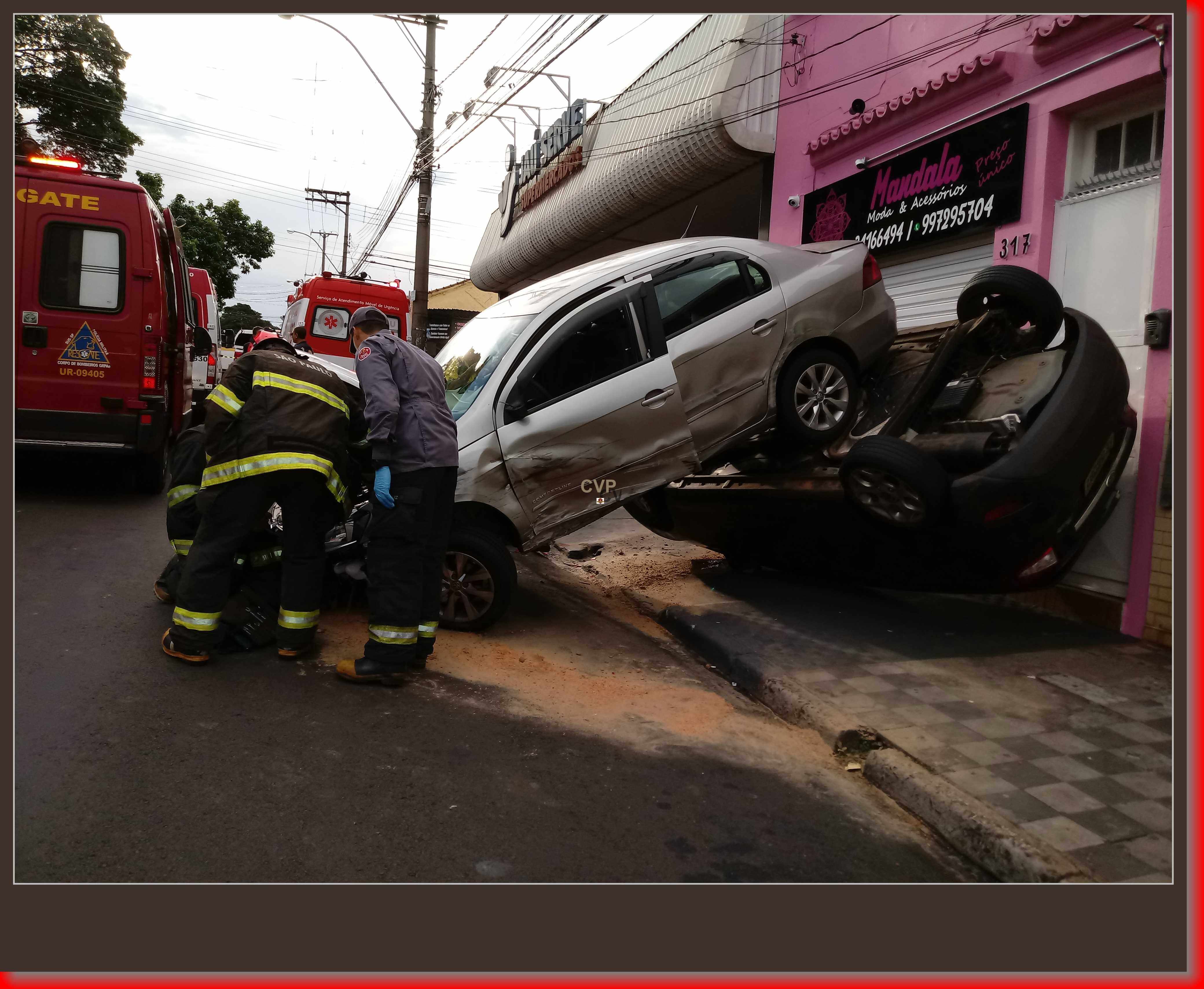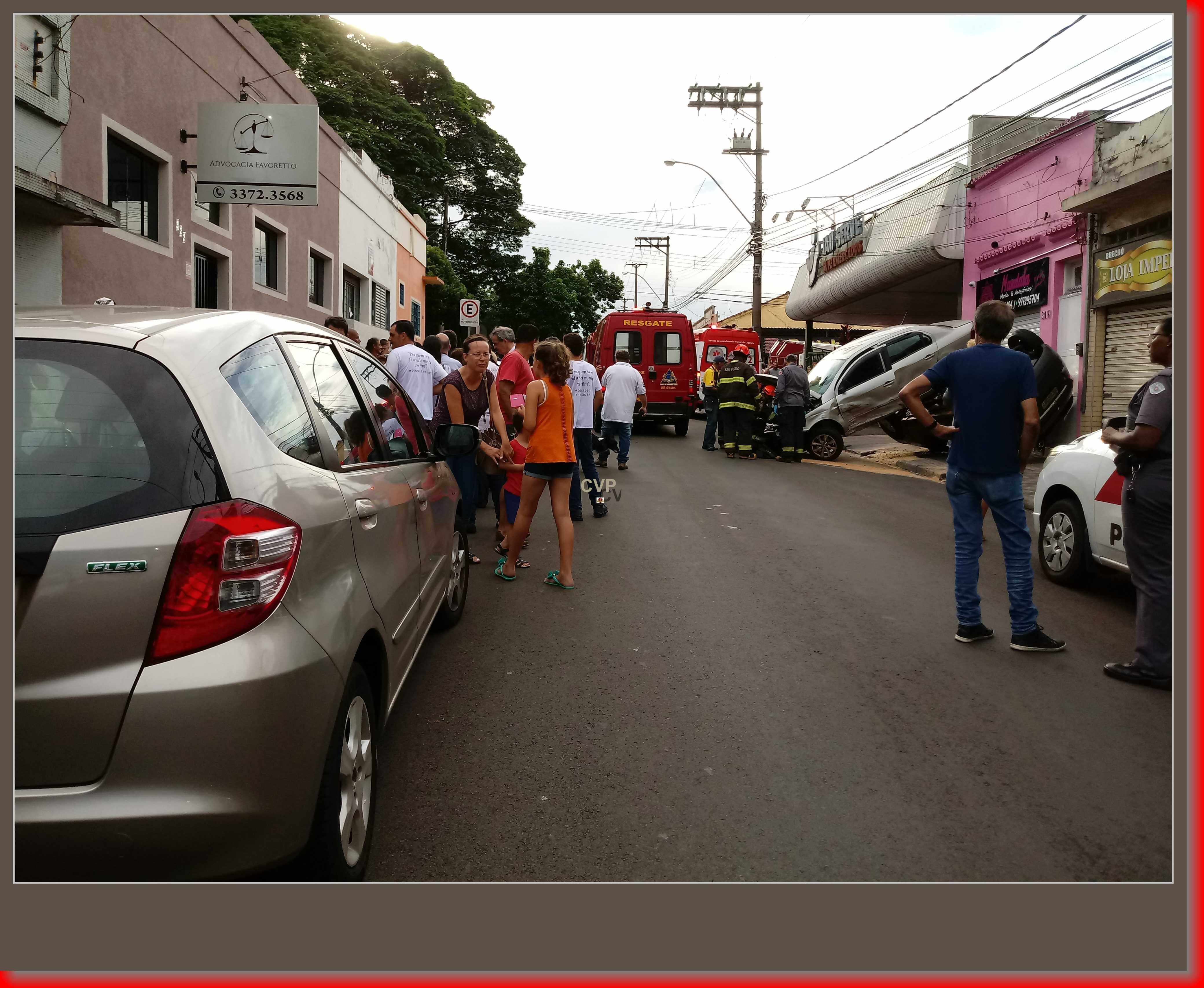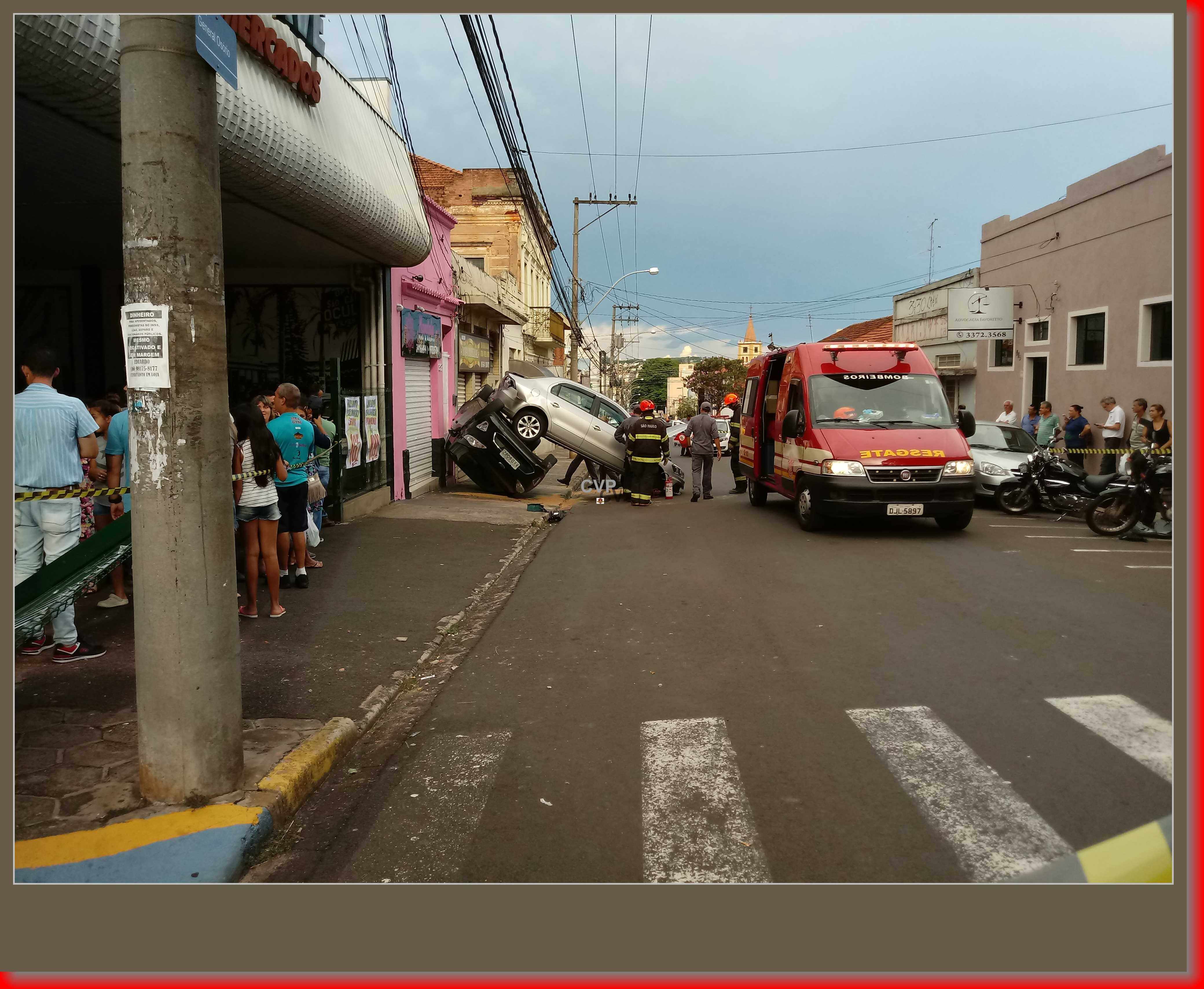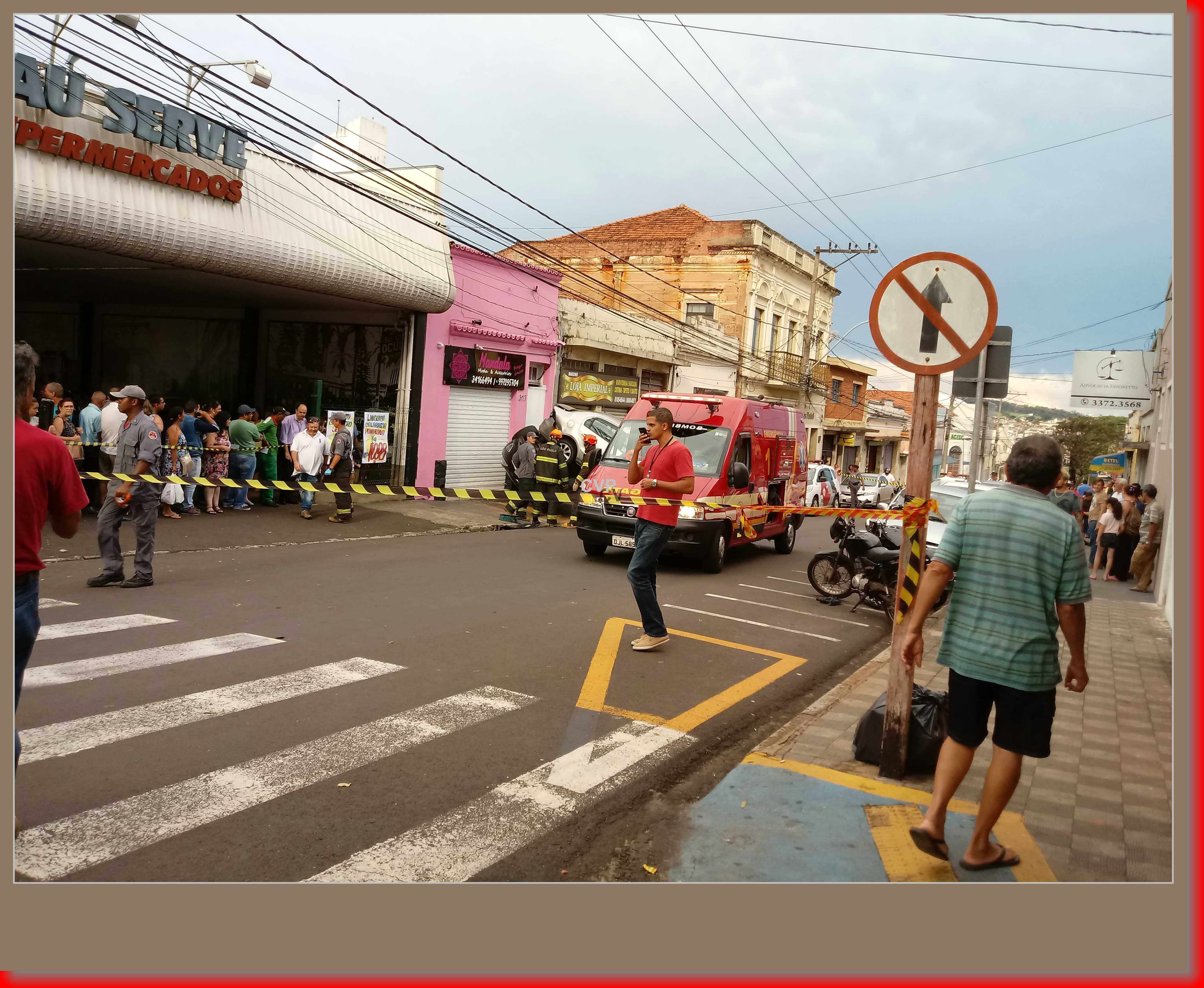 Segundo informações, o senhor Adelmo Salvador Masselli, de 77 anos, estava saindo do estacionamento de um supermercado com seu Voyage adaptado, por motivos a serem apurados, o carro desgovernou, atingiu duas motos, um GM Corsa da cor prata e depois atingiu um Fiesta da cor preta, q eu estava estacionado. O Fiesta acabou capotando. O carro que o idoso dirigia foi parar em cima do Fiesta capotado. O SAMU, Corpo de Bombeiros e Polícia Militar foram acionados, mas por sorte não houve feridos. Mas a cena chamou atenção dos curiosos. O transito ficou lento nas ruas próximas.