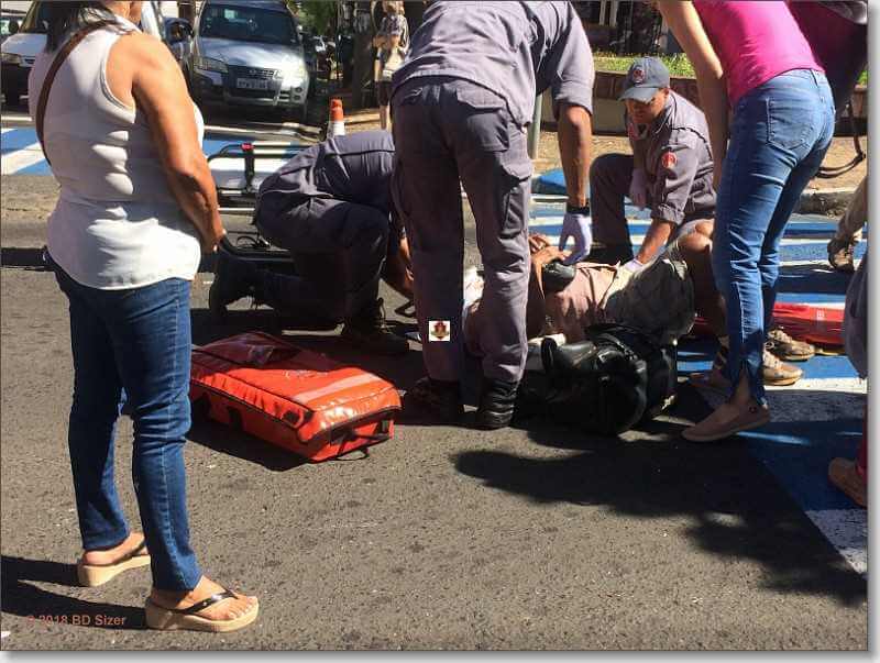 Um senhor de 67 anos, sofreu ferimentos ao ser atropelado por uma moto nesta manhã de quinta-feira, 10-05-2018, na rua Dona Alexandrina, cruzamento com a rua Major José Inácio, região central de São Carlos-SP.