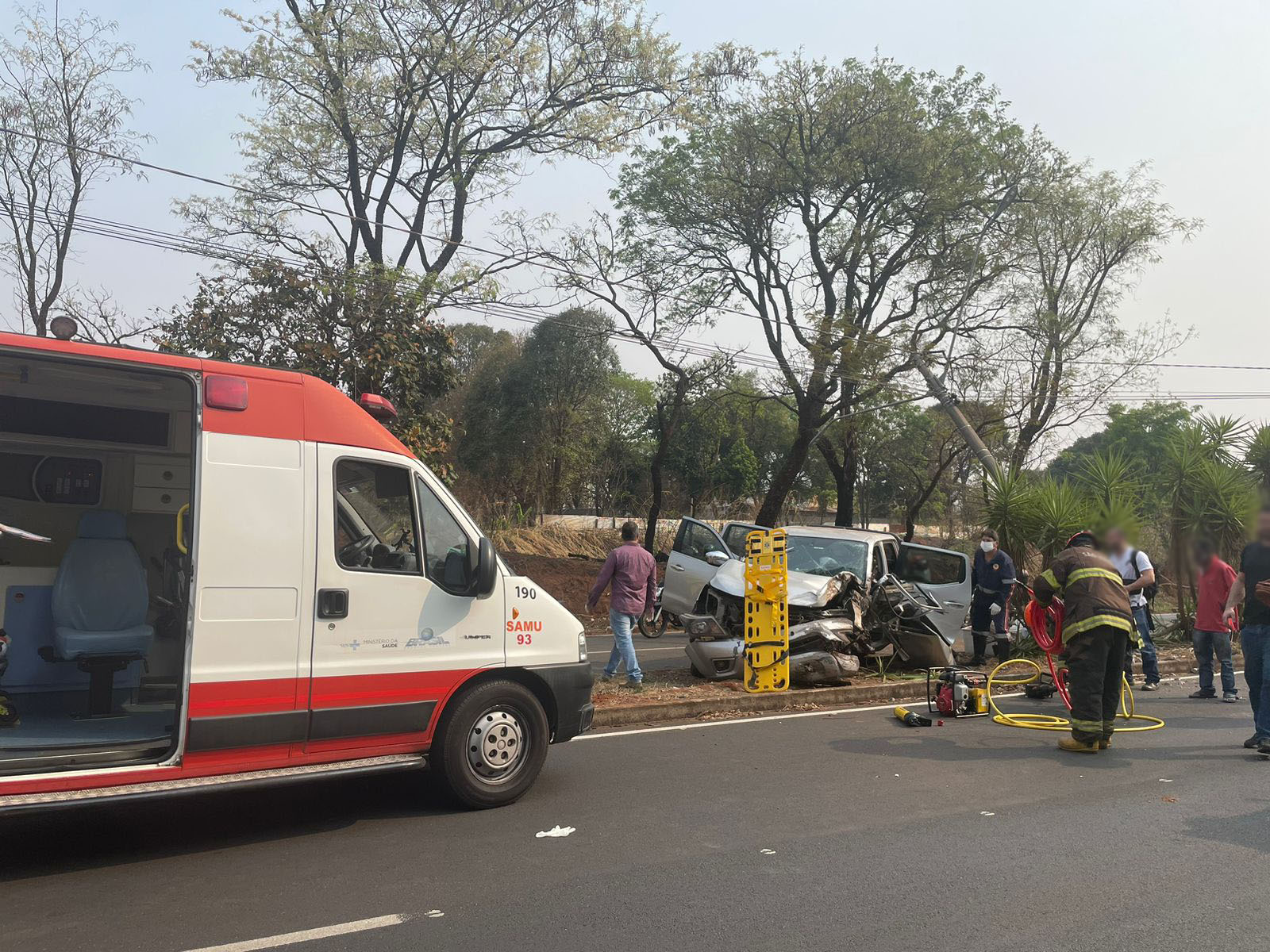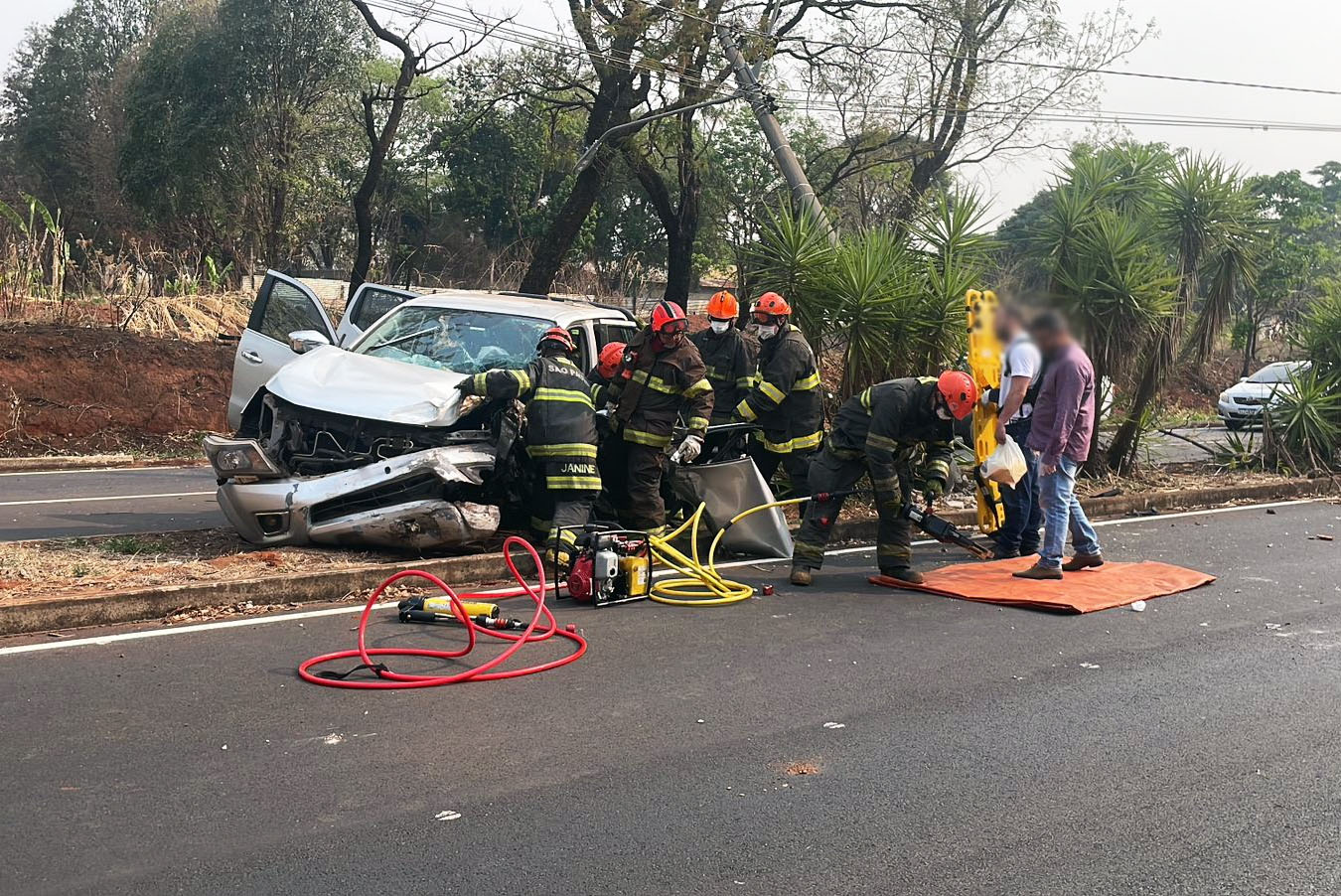 O Corpo de Bombeiros foi acionado e trabalhou intensamente para conseguir tirar a vítima das ferragens do veículo e realizar o socorro.