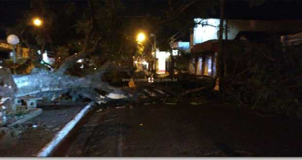Uma grande árvore  caiu na noite de domingo , 17-02-2019, na Avenida Dr. Teixeira de Barro, bairro Vila Prado, São Carlos-SP.