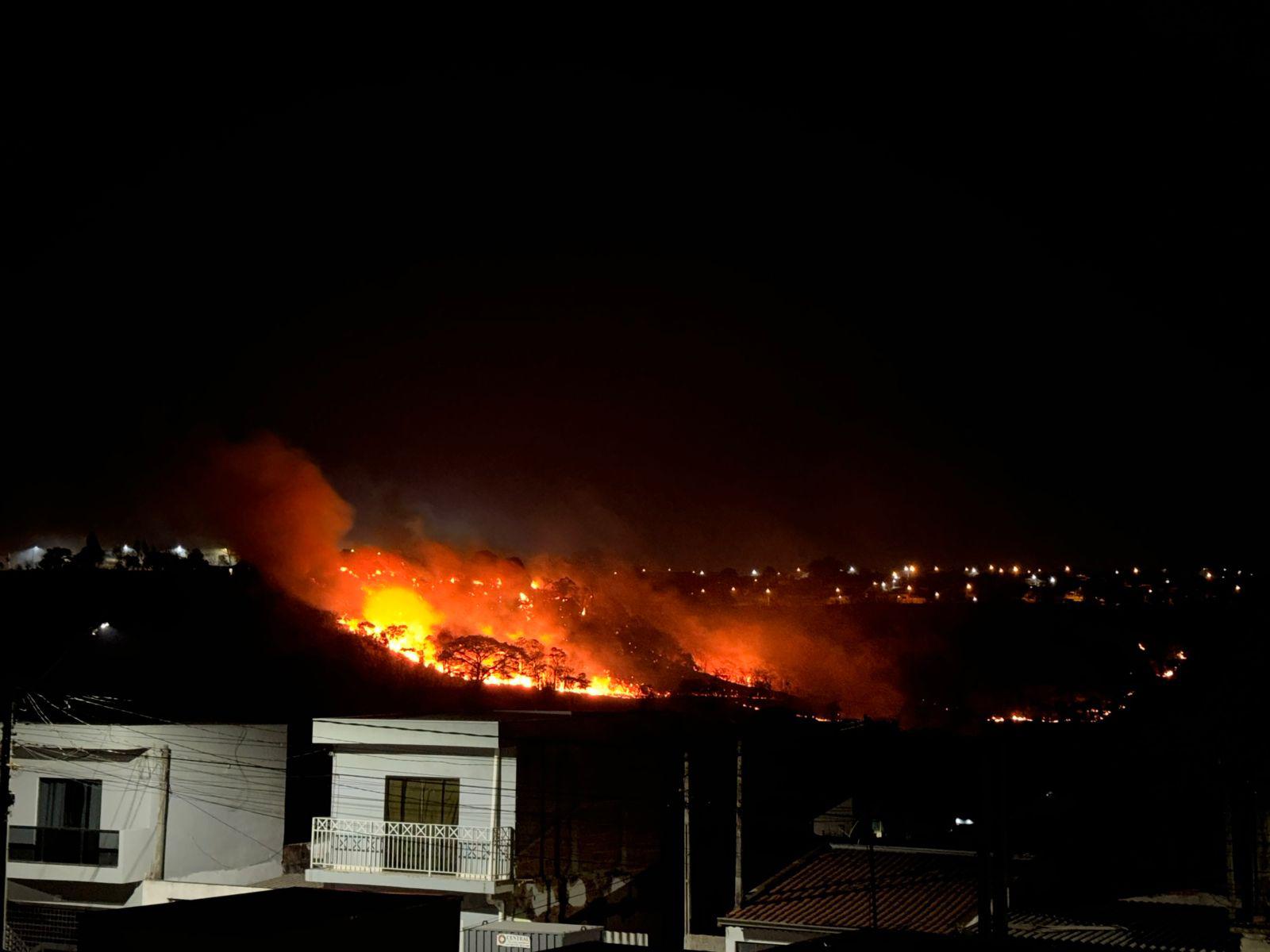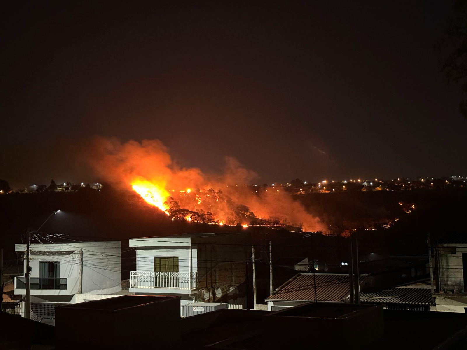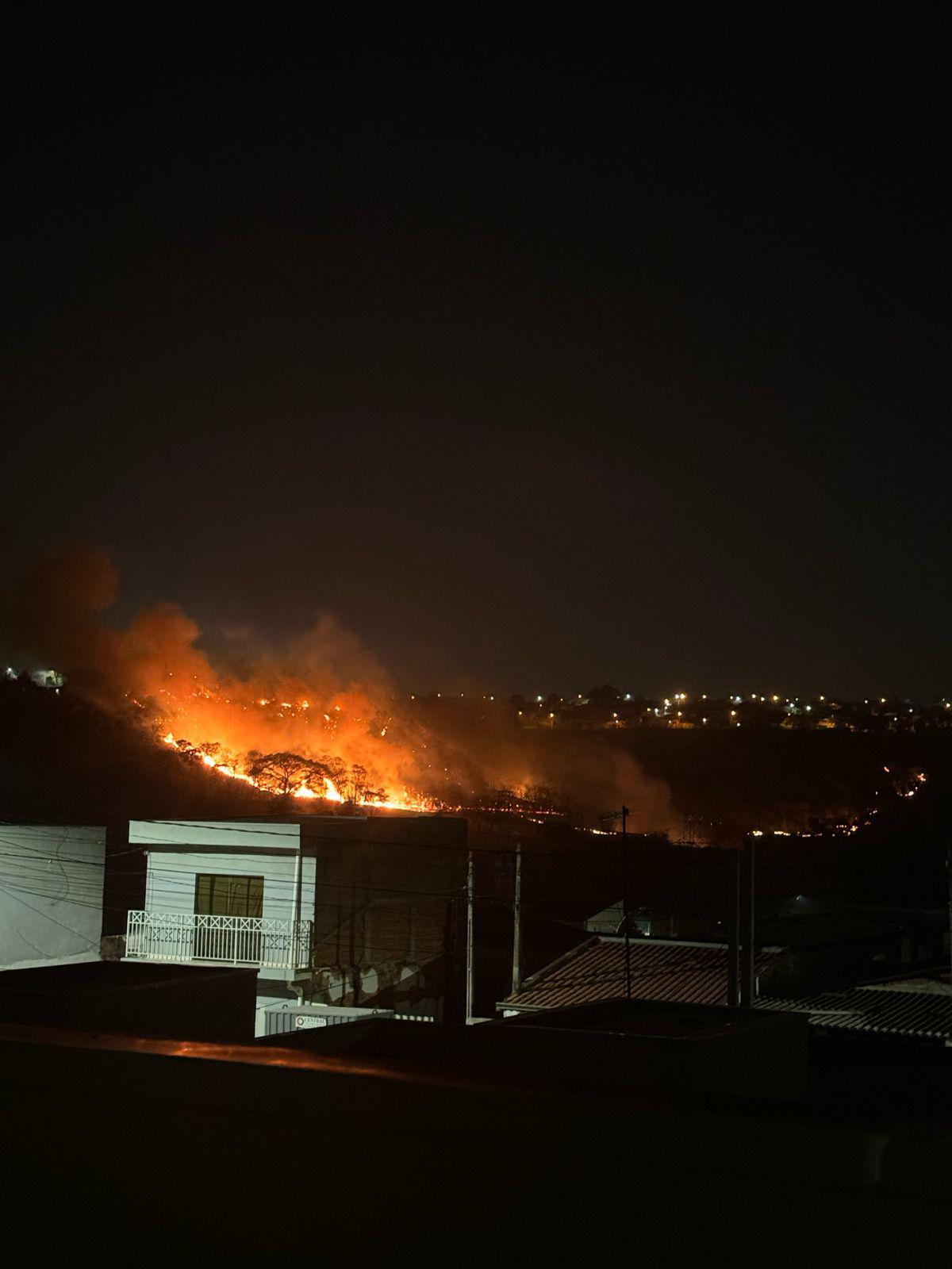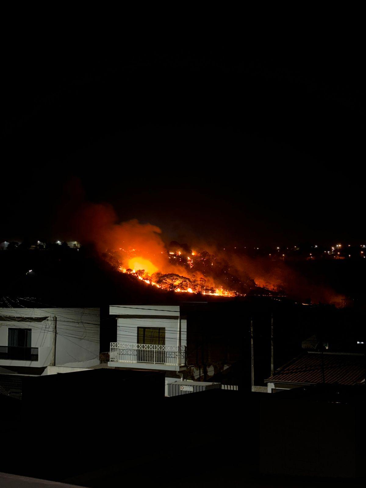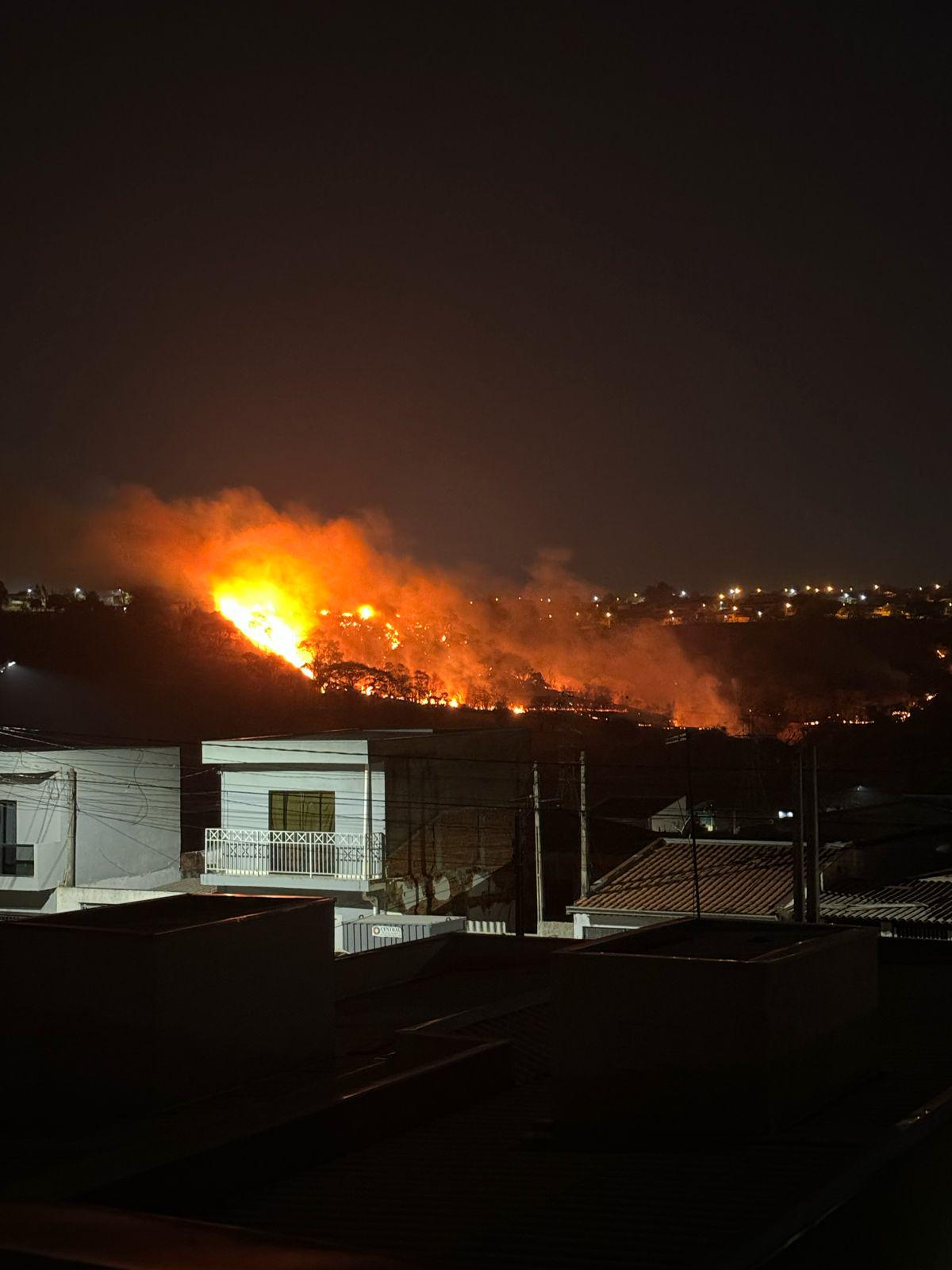 Nesta madrugada de quarta-feira, 21 de agosto de 2024, um incêndio devorou parte de uma área de mata na região da serra do bairro Cidade Aracy, São Carlos-SP.