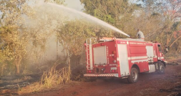 As chamas se espalharam rapidamente pela vegetação, formando uma densa nuvem de fumaça que podia ser vista de longe.