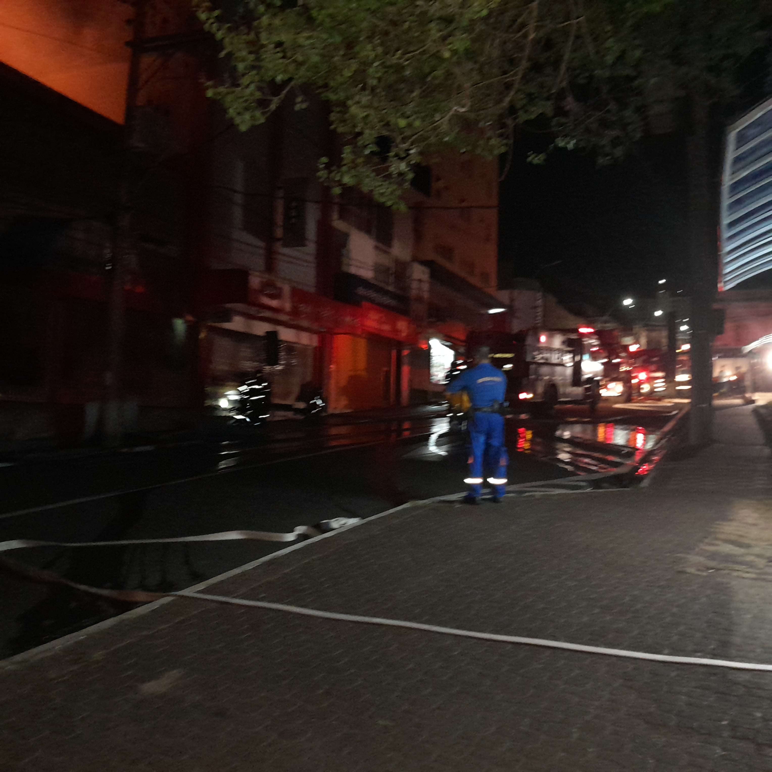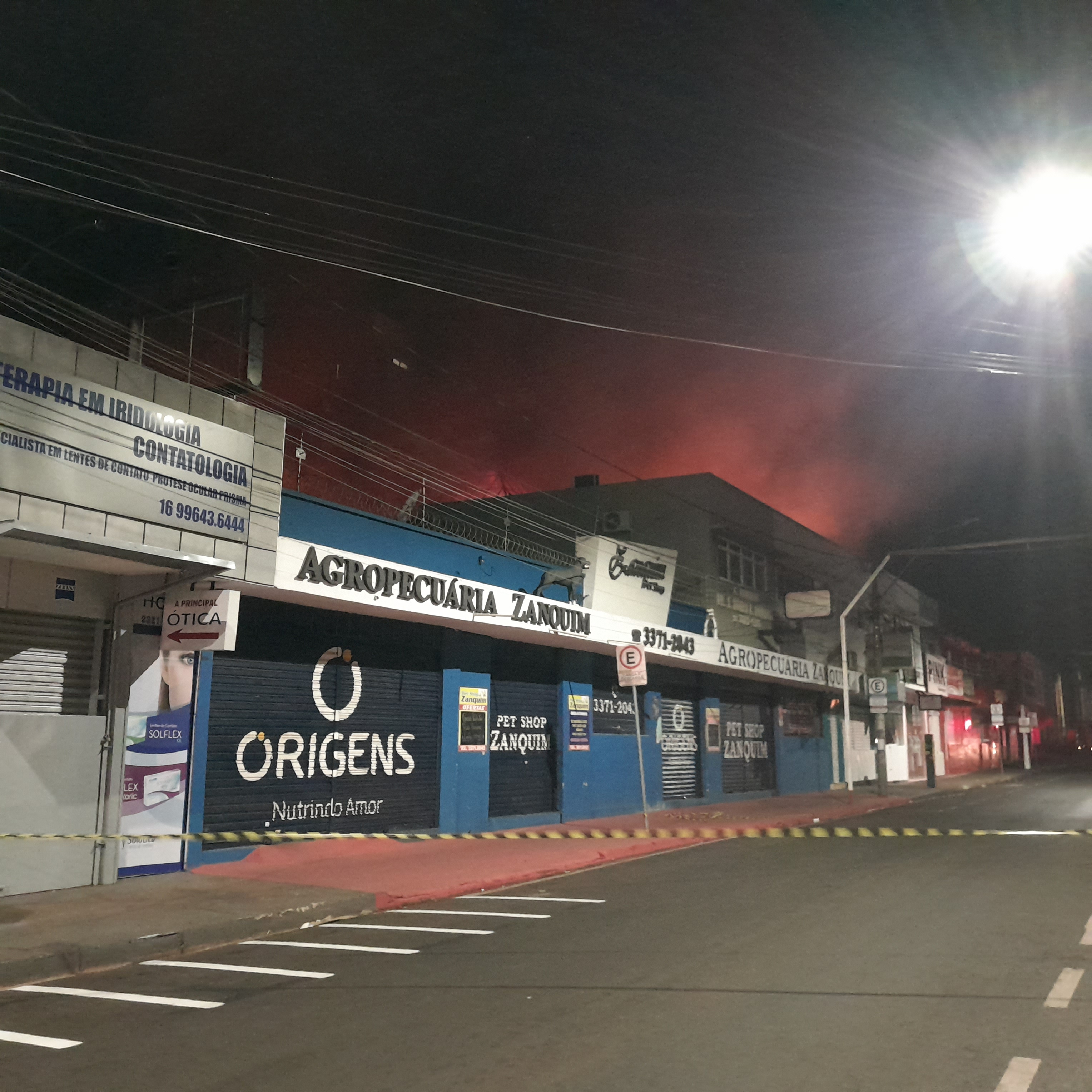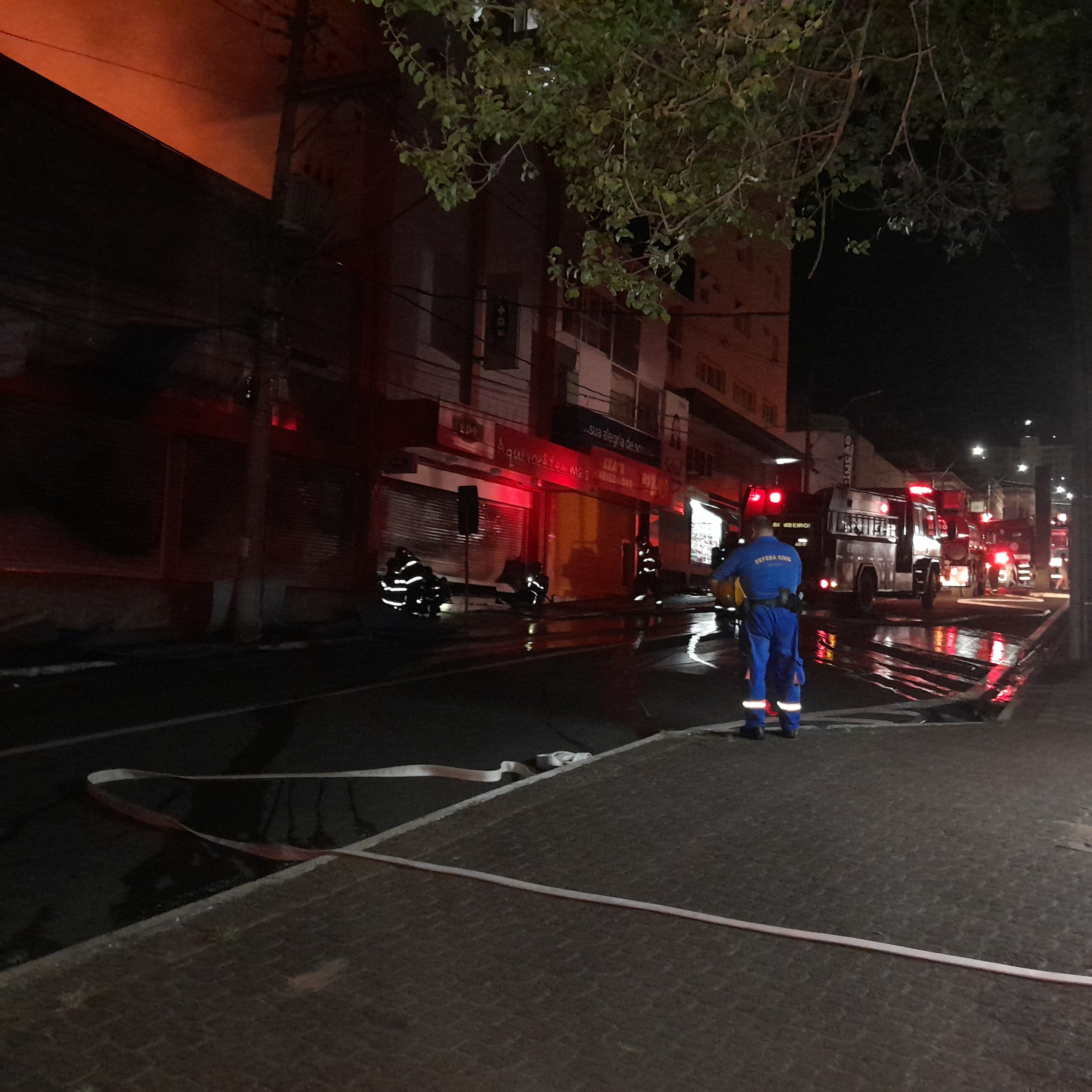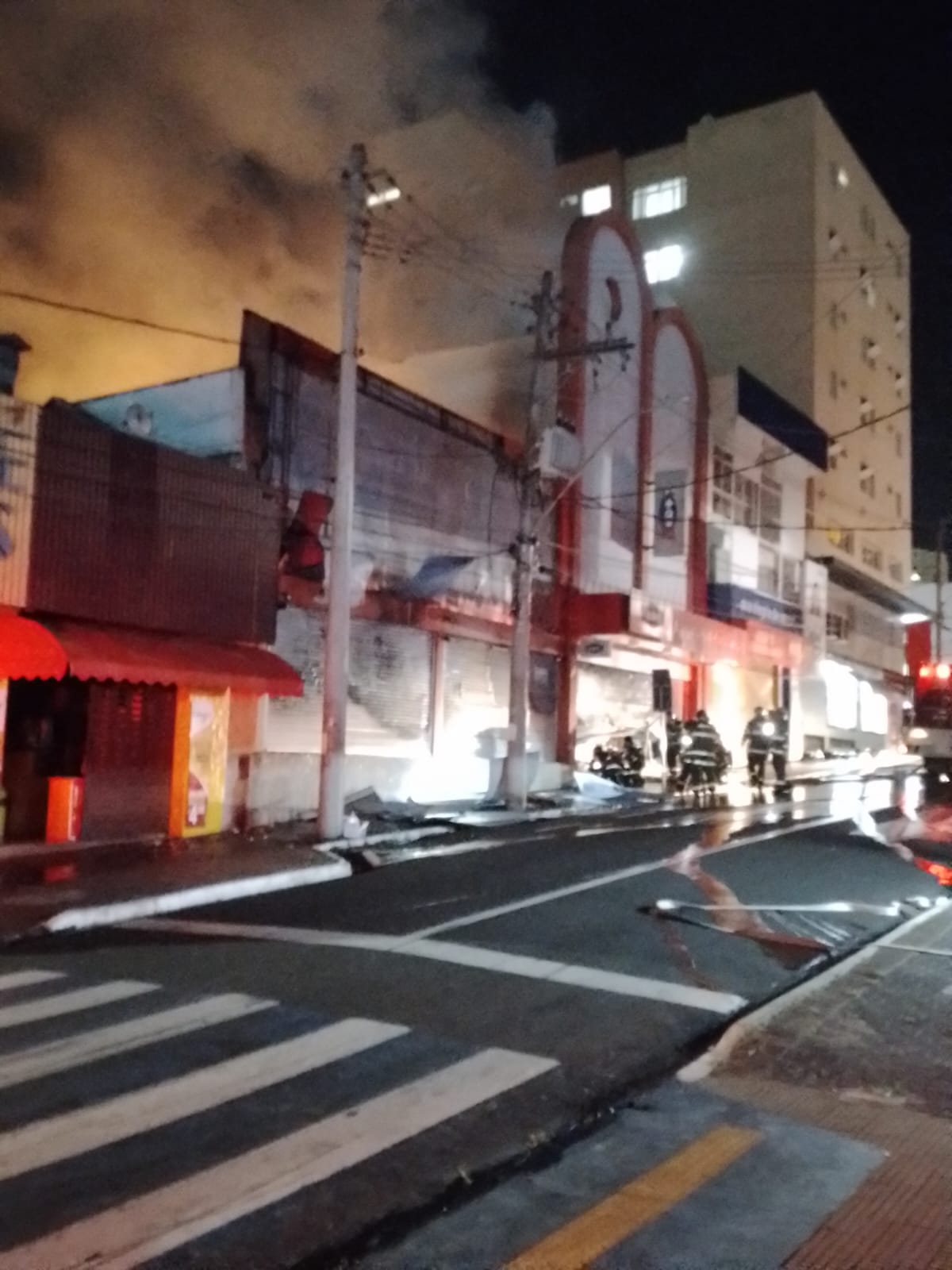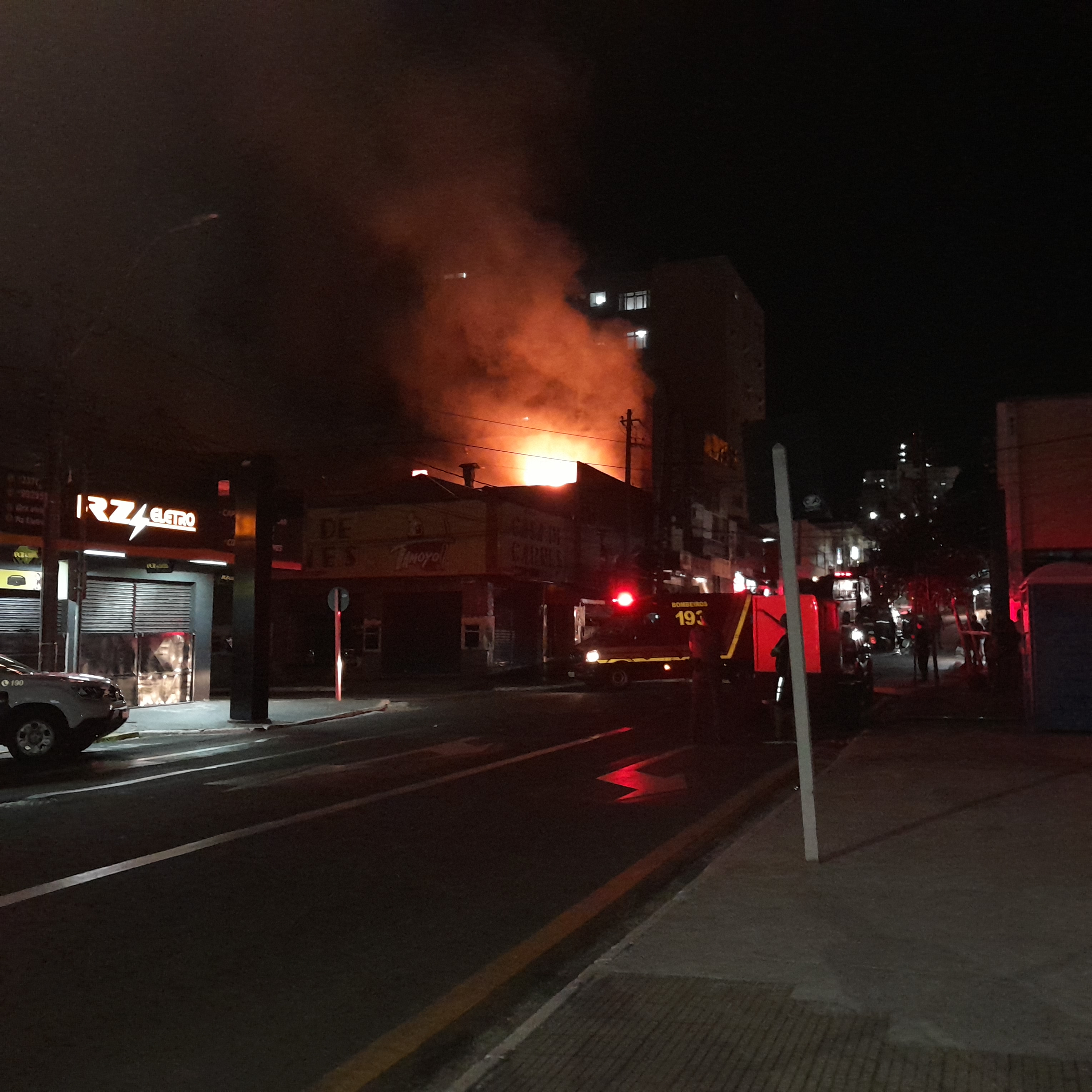 Um incêndio de grande porção consumiu a Loja Édmais nesta noite de domingo, 12 de novembro de 2023, no Centro de São Carlos-SP.
