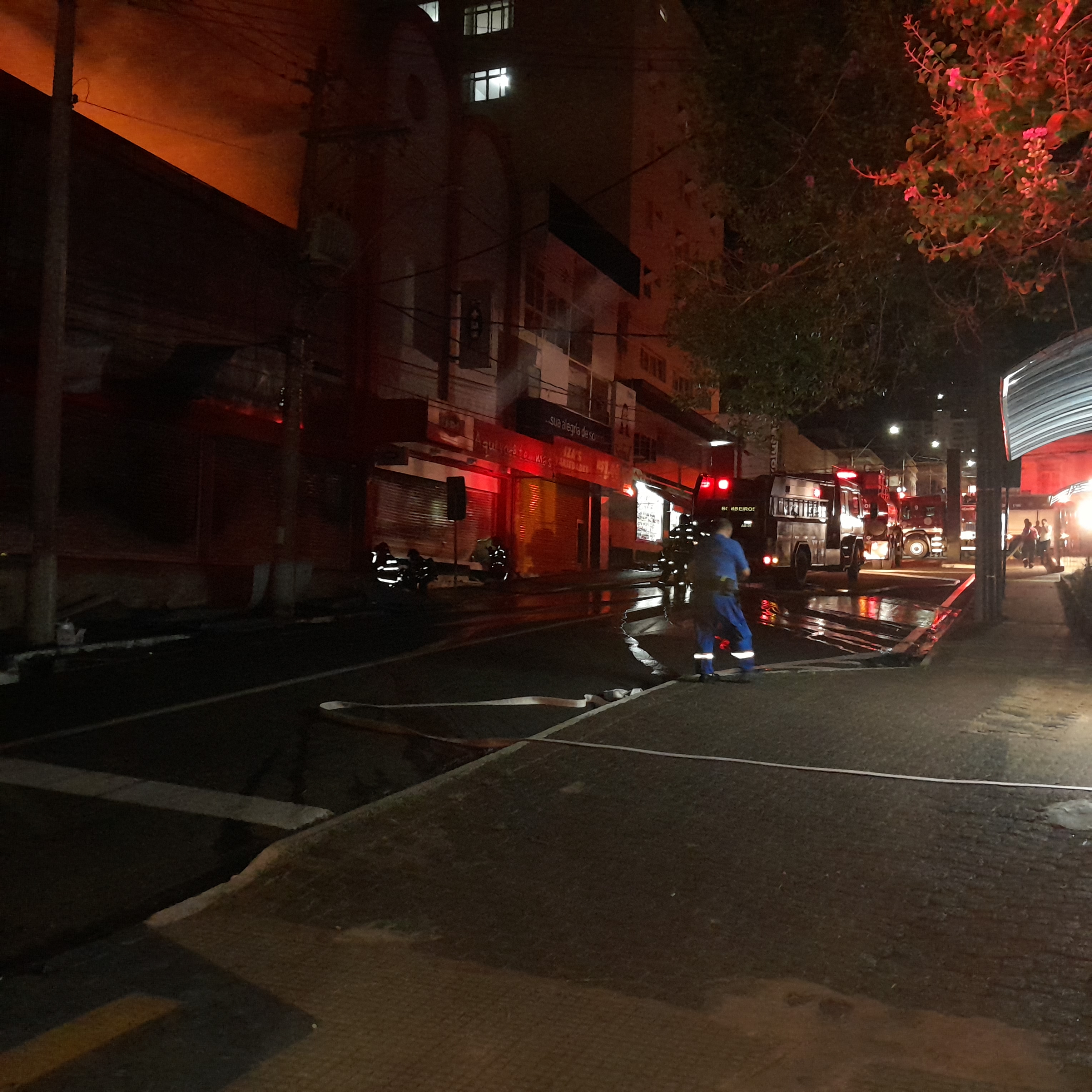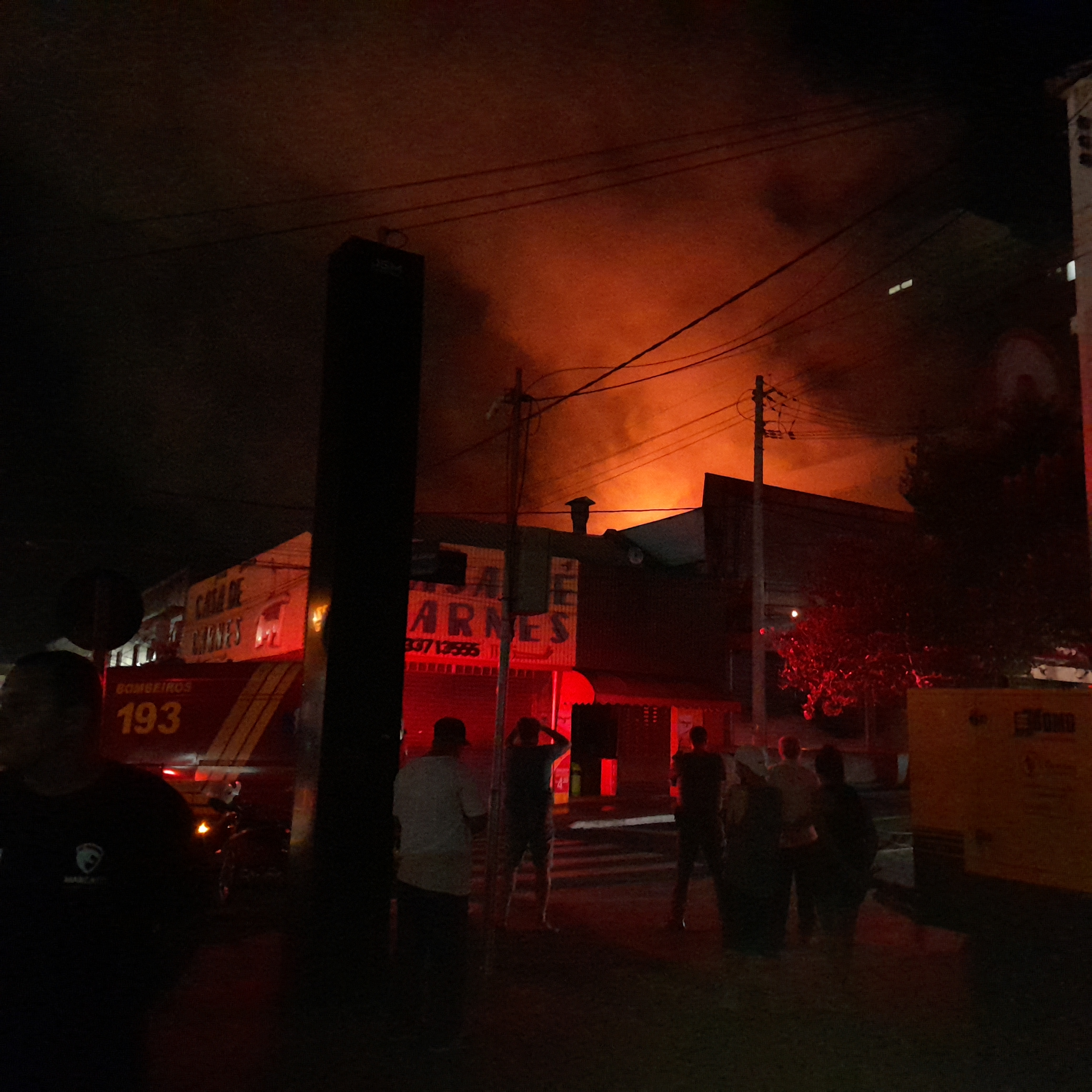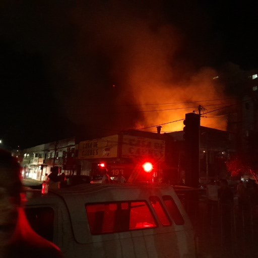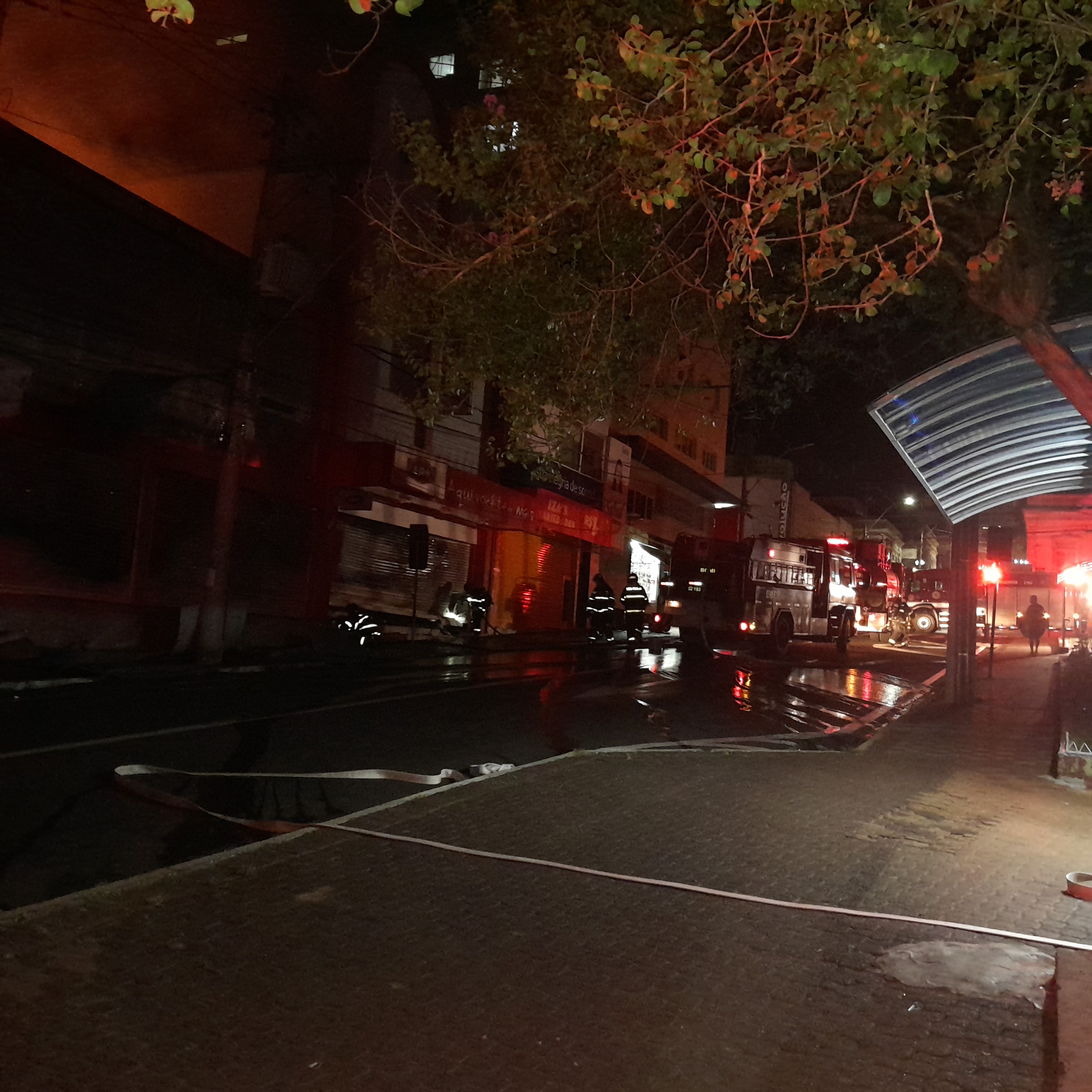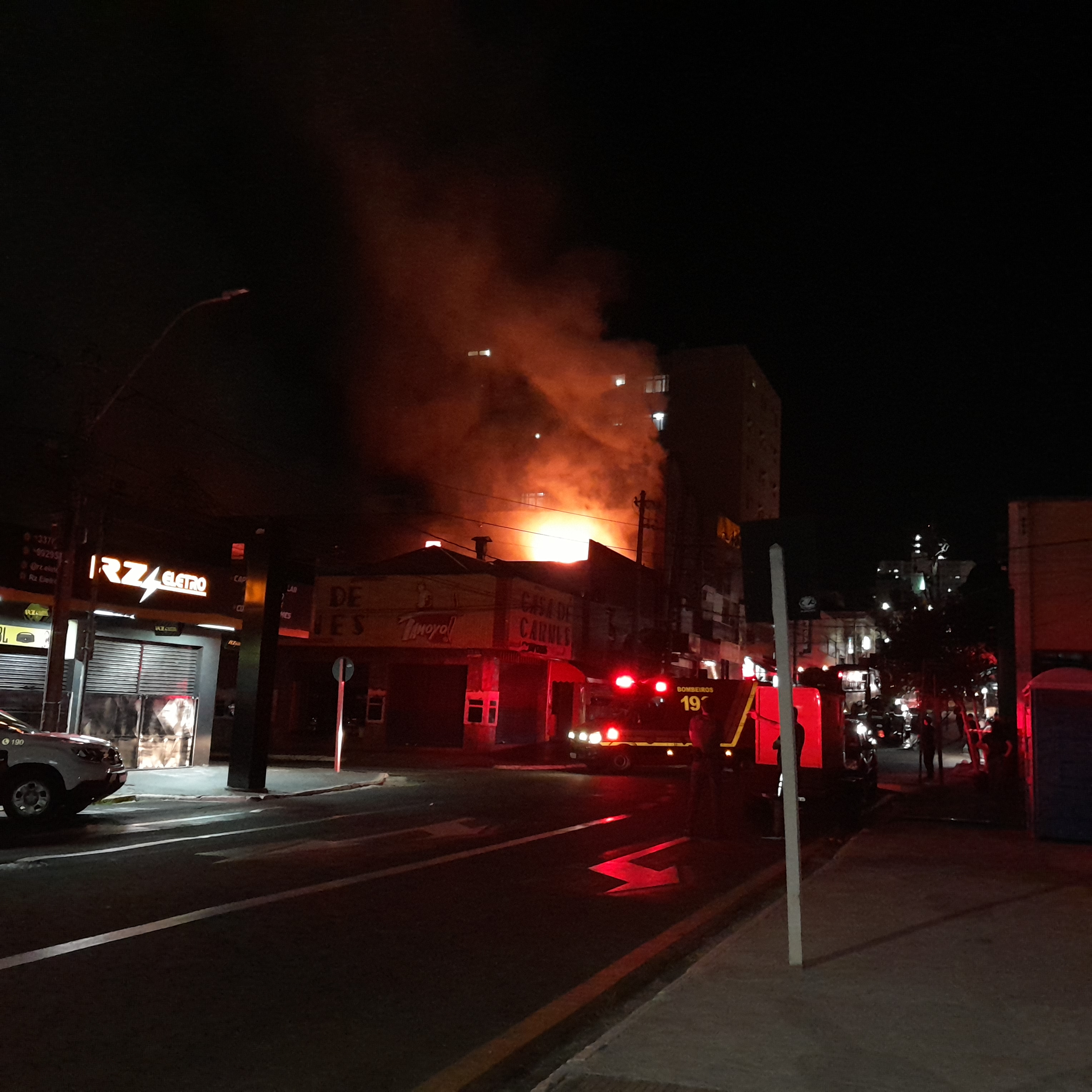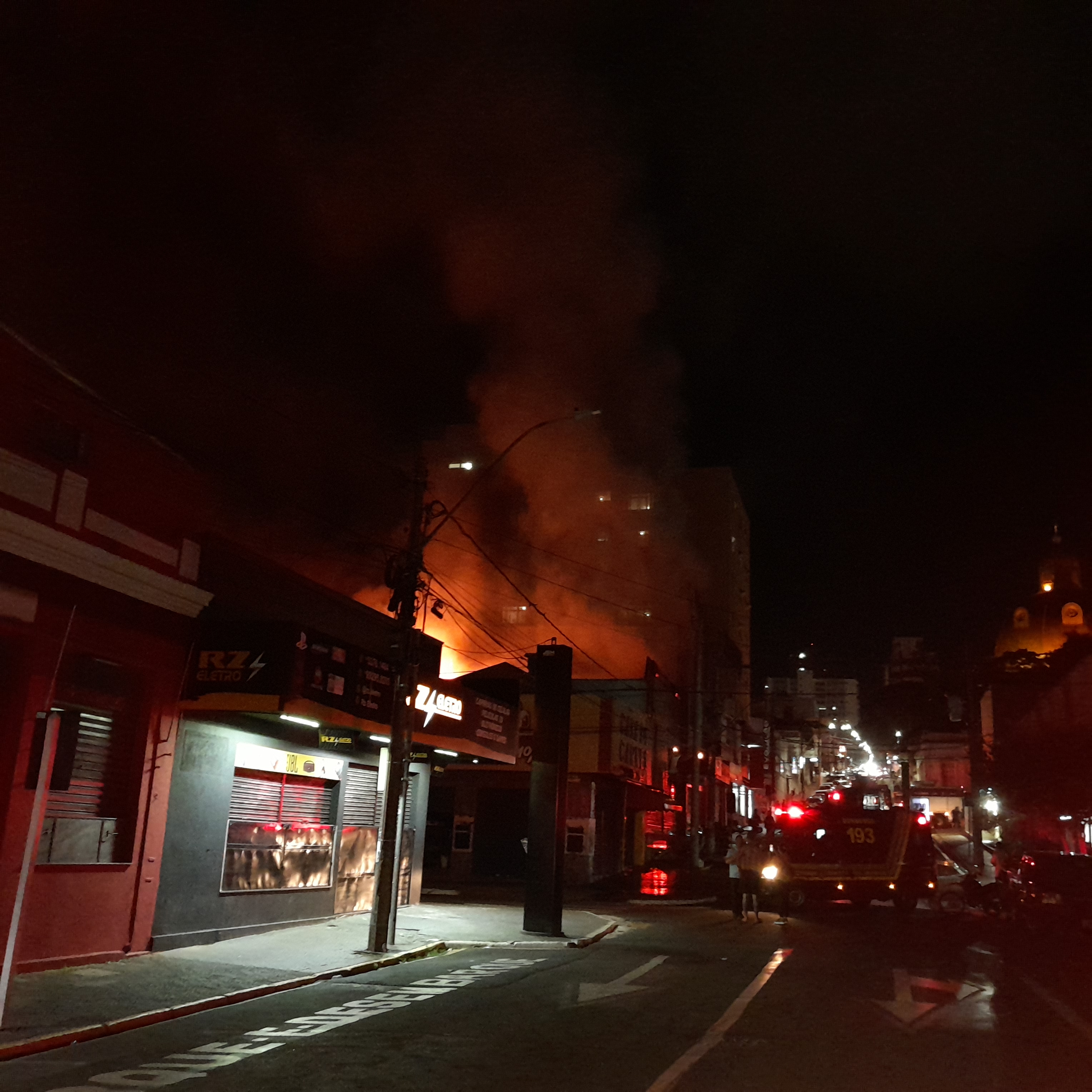 Um incêndio de grande porção consumiu a Loja Édmais nesta noite de domingo, 12 de novembro de 2023, no Centro de São Carlos-SP.