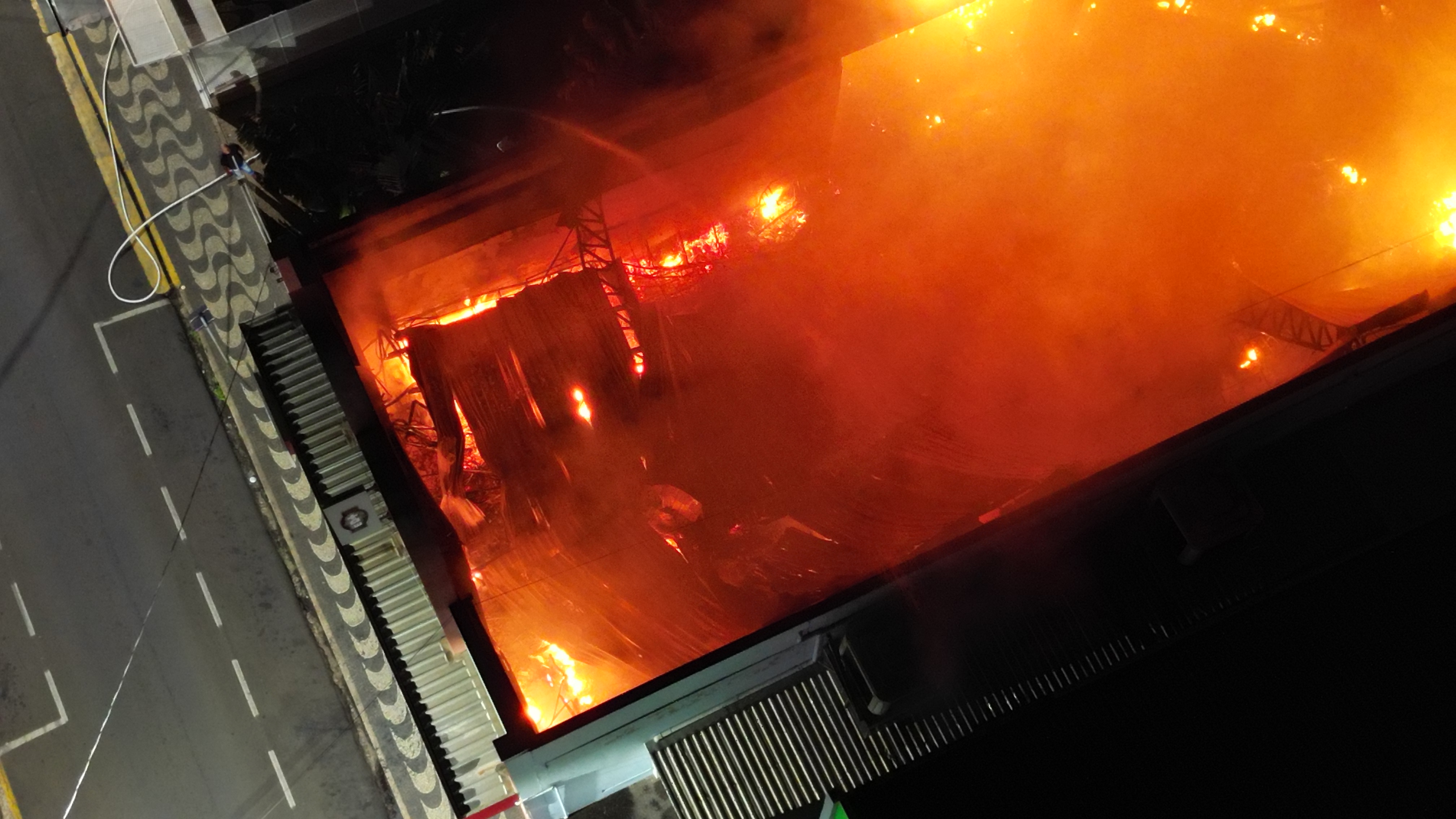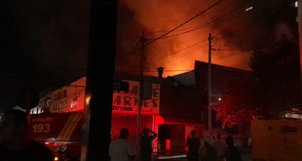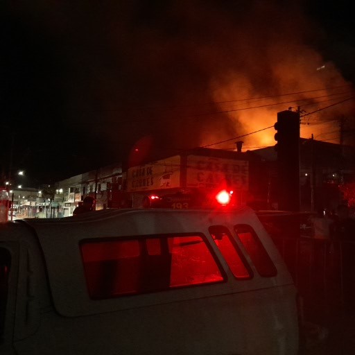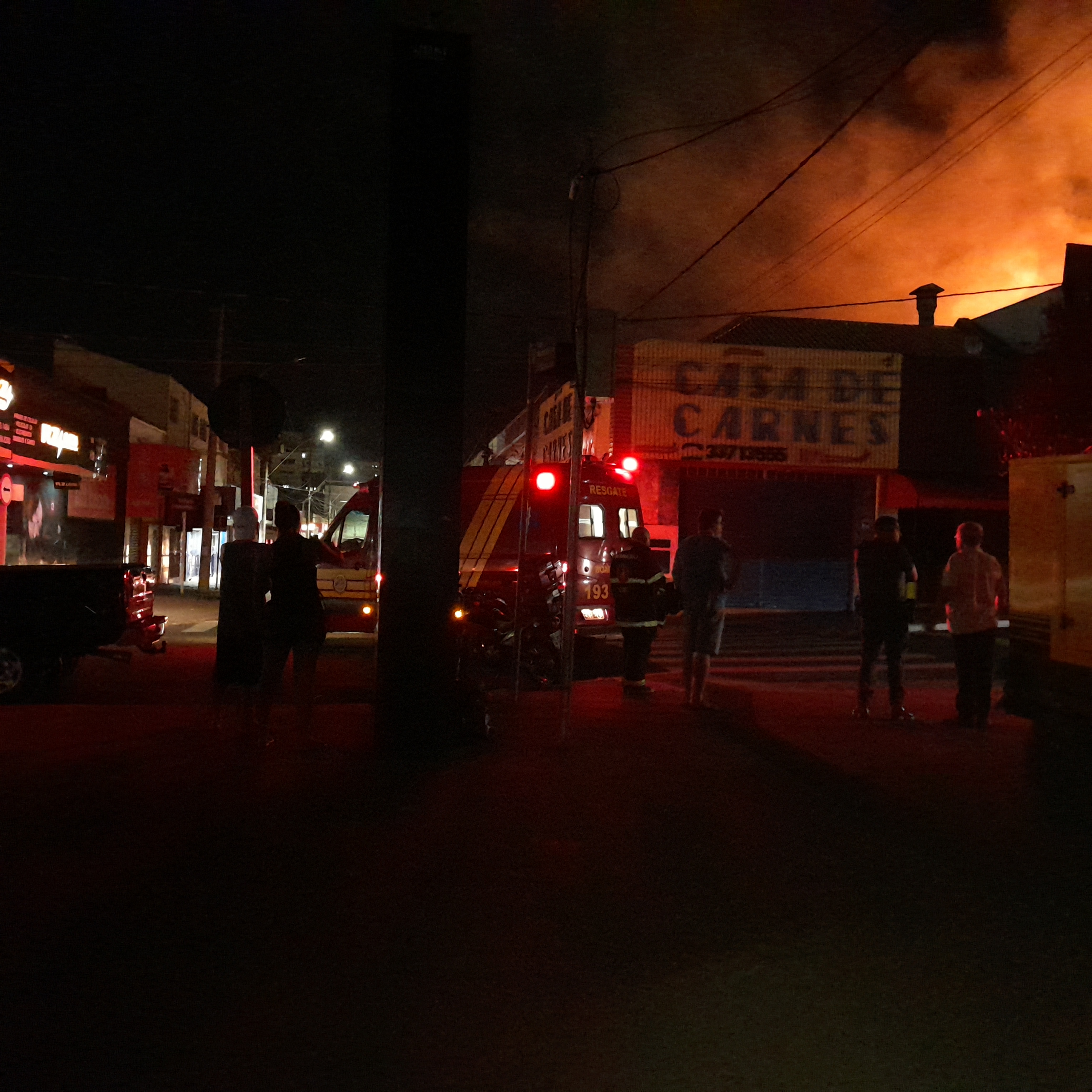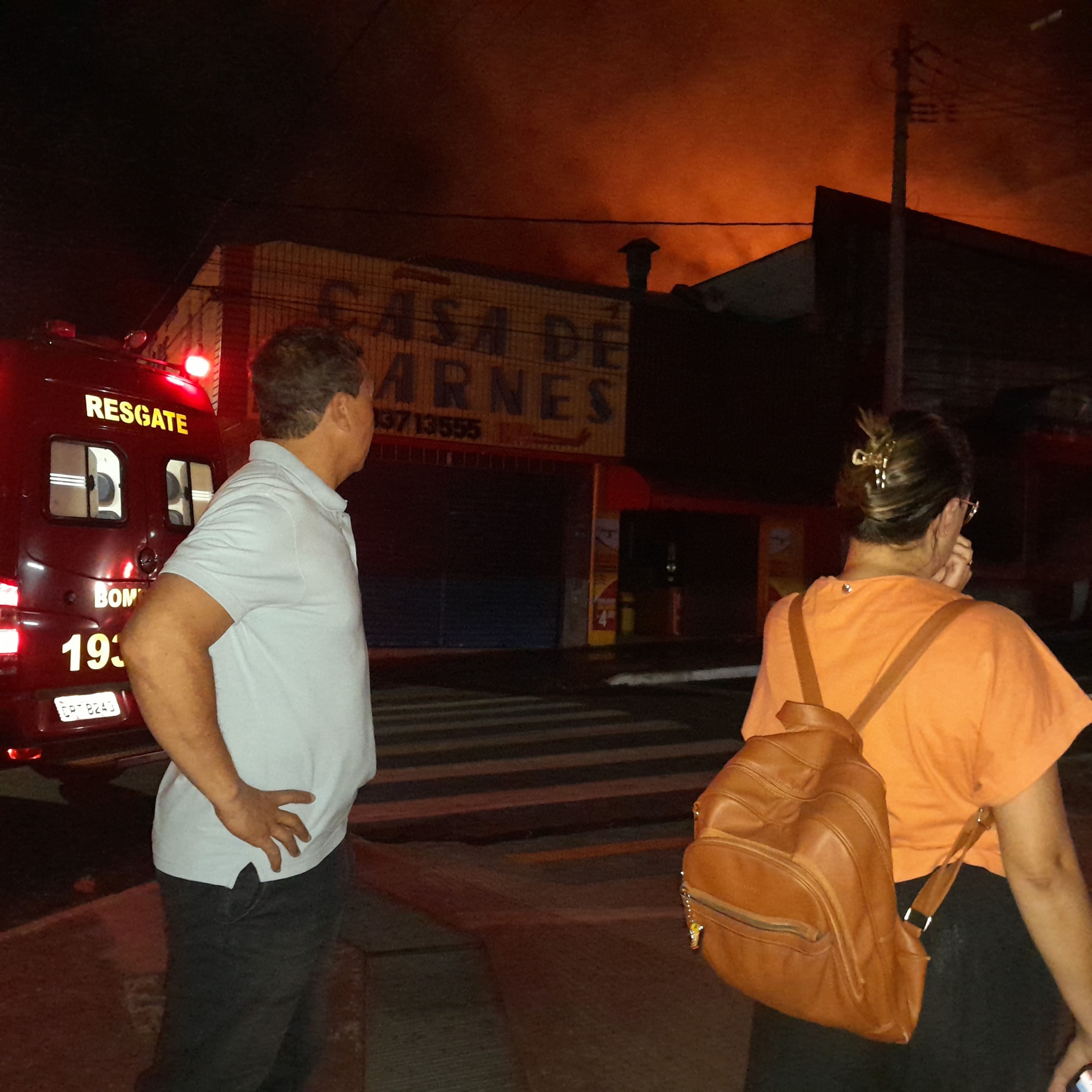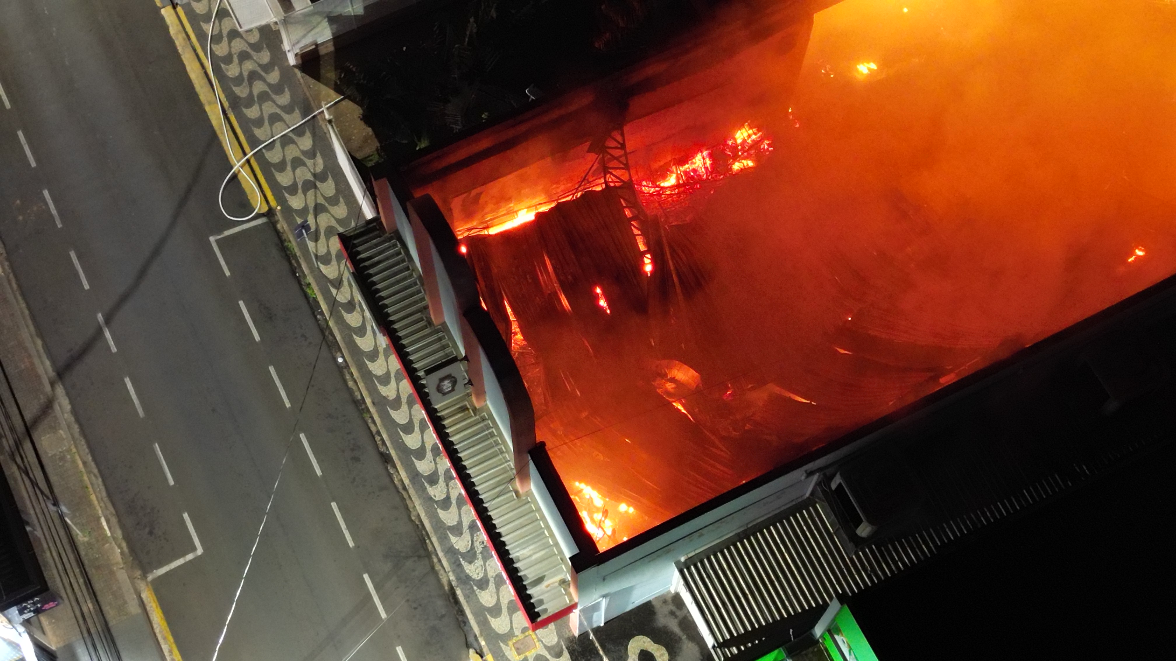 Um incêndio de grande porção consumiu a Loja Édmais nesta noite de domingo, 12 de novembro de 2023, no Centro de São Carlos-SP.