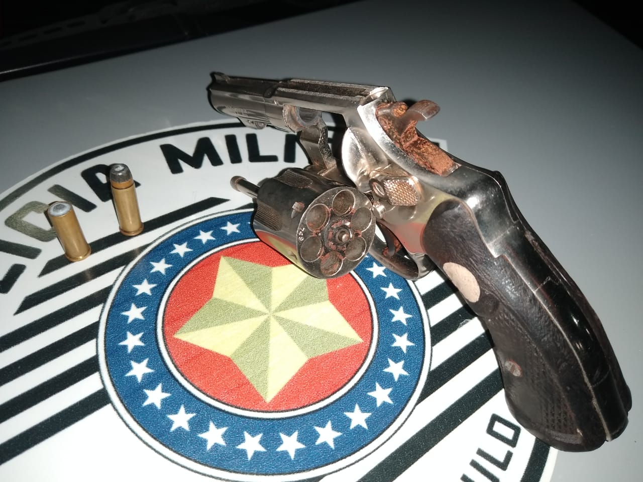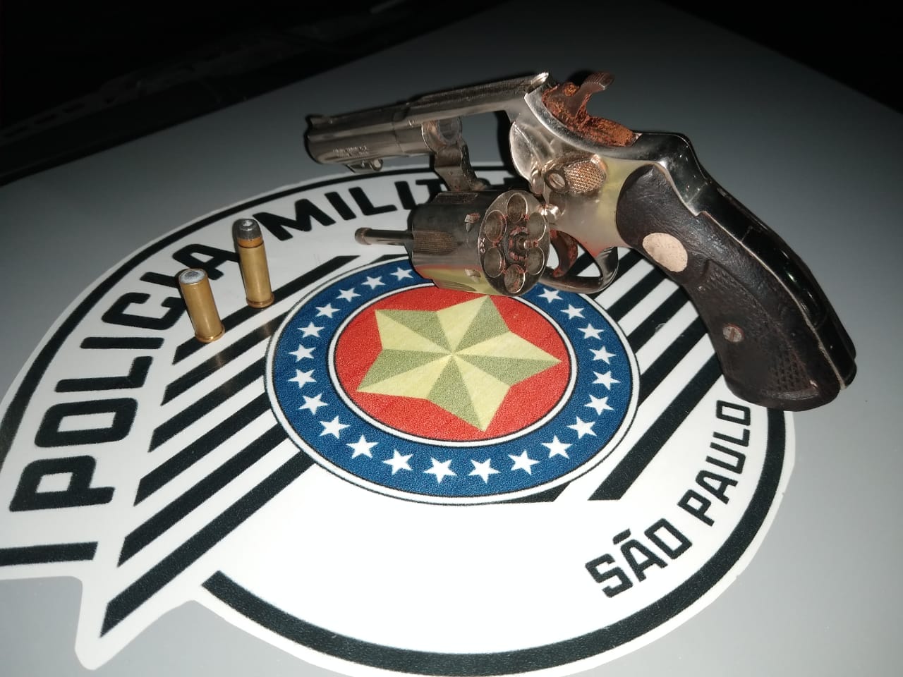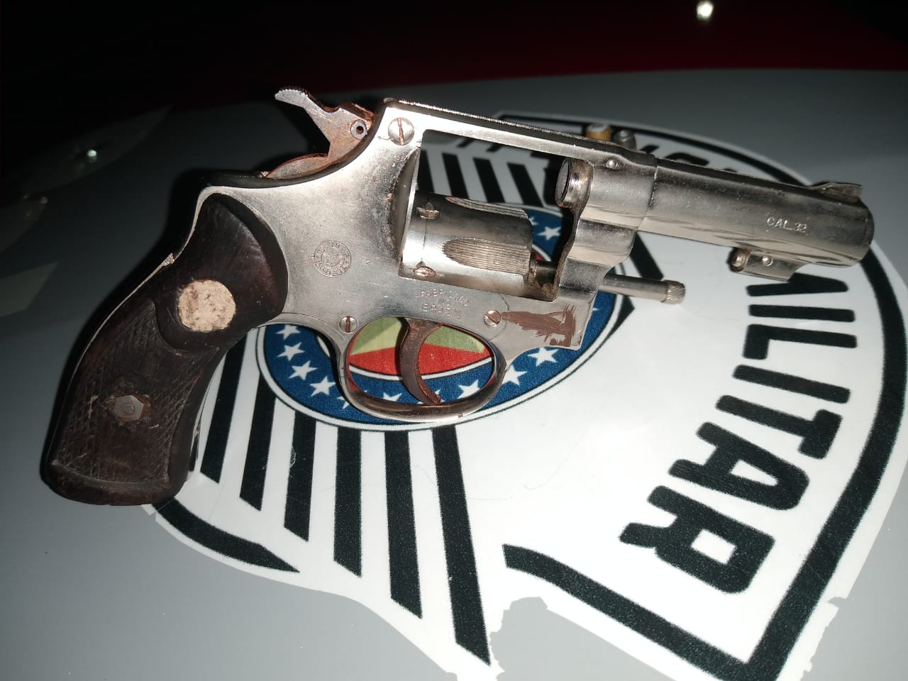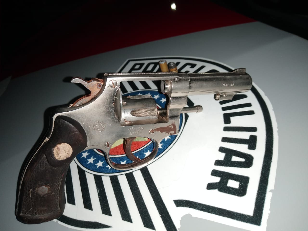 Segundo informações, os policiais militares Pereira e Ribeiro patrulhavam essa região , quando uma pessoa saiu correndo e dispensou o revólver calibre 32 com numeração raspada.