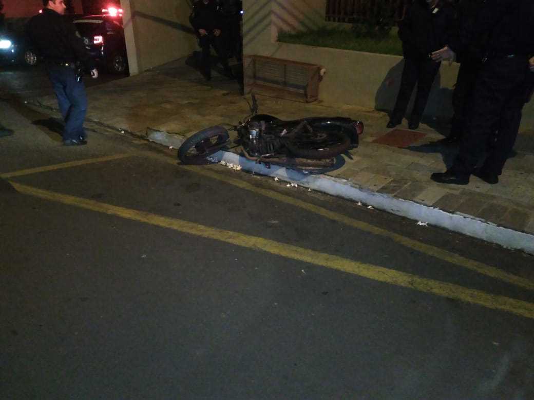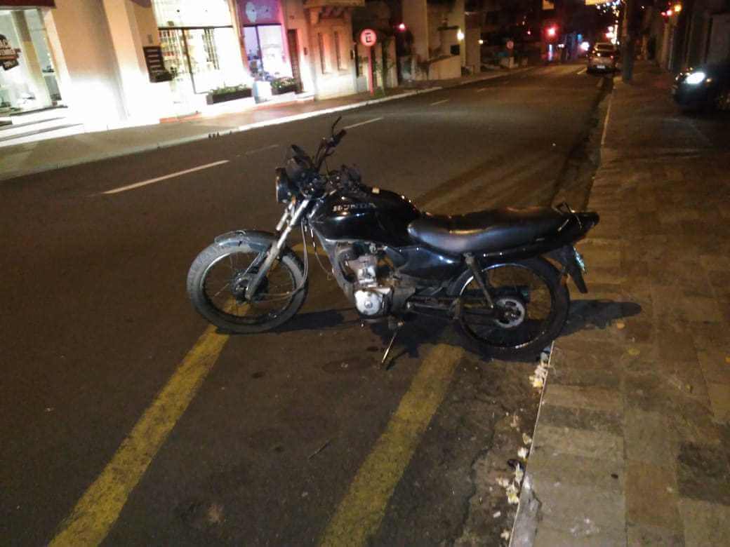 Segundo informações, por volta das 2:20 a GM recebeu denúncia que um sujeito estaria conduzindo uma moto pela avenida São Carlos, mas que o mesmo estava sem capacete. Os GMs Risomar, Oliveira e Ostapechen saíram em patrulhamento e na referida avenida, cruzamento com a rua Marechal Deodoro se depararam com o mesmo que empreendeu fuga e só foi detido na rua Episcopal. O indivíduo que não teve o nome e nem idade revelados caiu e foi detido. Ele disse que teria comprado a moto de um usuário de droga e pagado dez reais. A GM conseguiu localizar o dono da moto e as partes foram encaminhadas ao Plantão Policial onde o sujeito ficou à disposição da justiça.