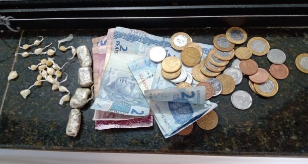 Segundo informações, C. F. O, idade não informada foi detido. Na casa , no bolso de uma calça preta e o dinheiro espalhado numa mesa. Que averiguado acabou assumindo a posse e se diz usuário, onde teria adquirido a droga após a venda de reciclagem. Que fora dado Voz de Prisão e utilizado algemas. Parte e entorpecentes apresentados no Plantão Policial onde a autoridade lavrou o RDO equivalente e o indiciado permaneceu preso.