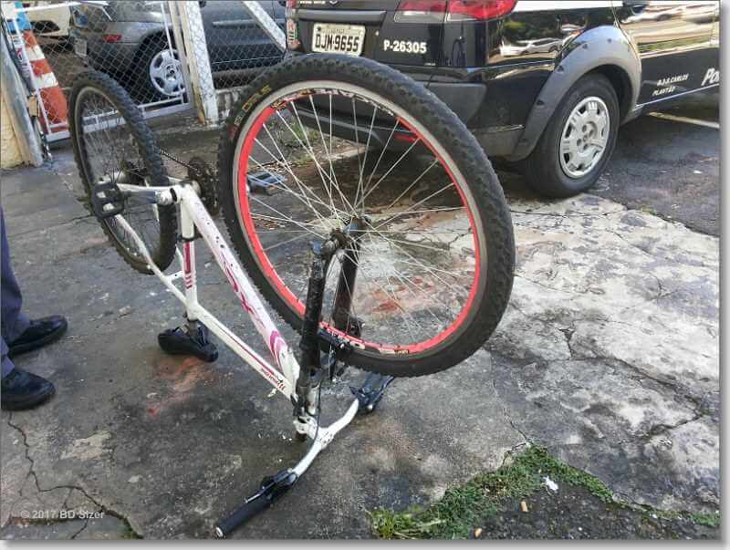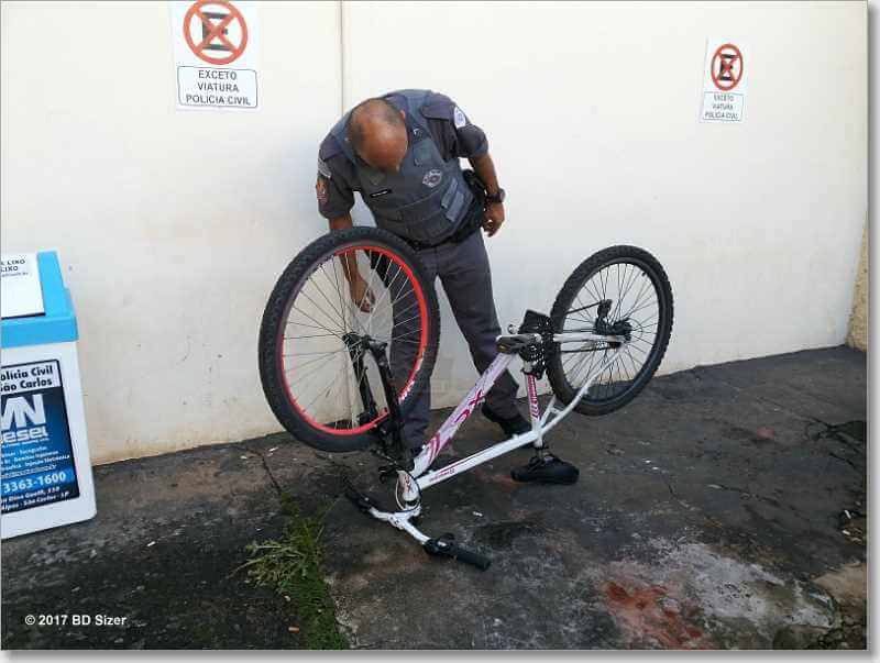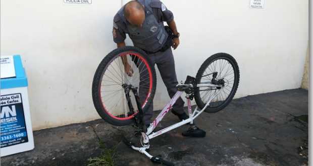 A Polícia Militar apreendeu uma bicicleta nesta manhã de sábado, 22-04-2017, após um indivíduo empreender fuga e abandonar a bicicleta na rodovia Washington Luís, São Carlos-SP.