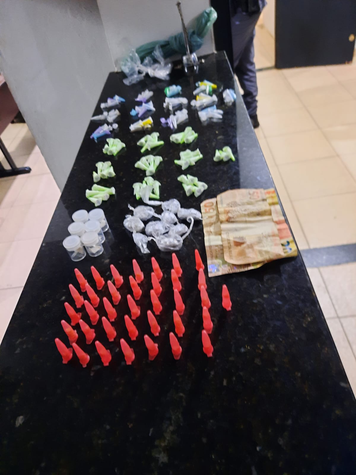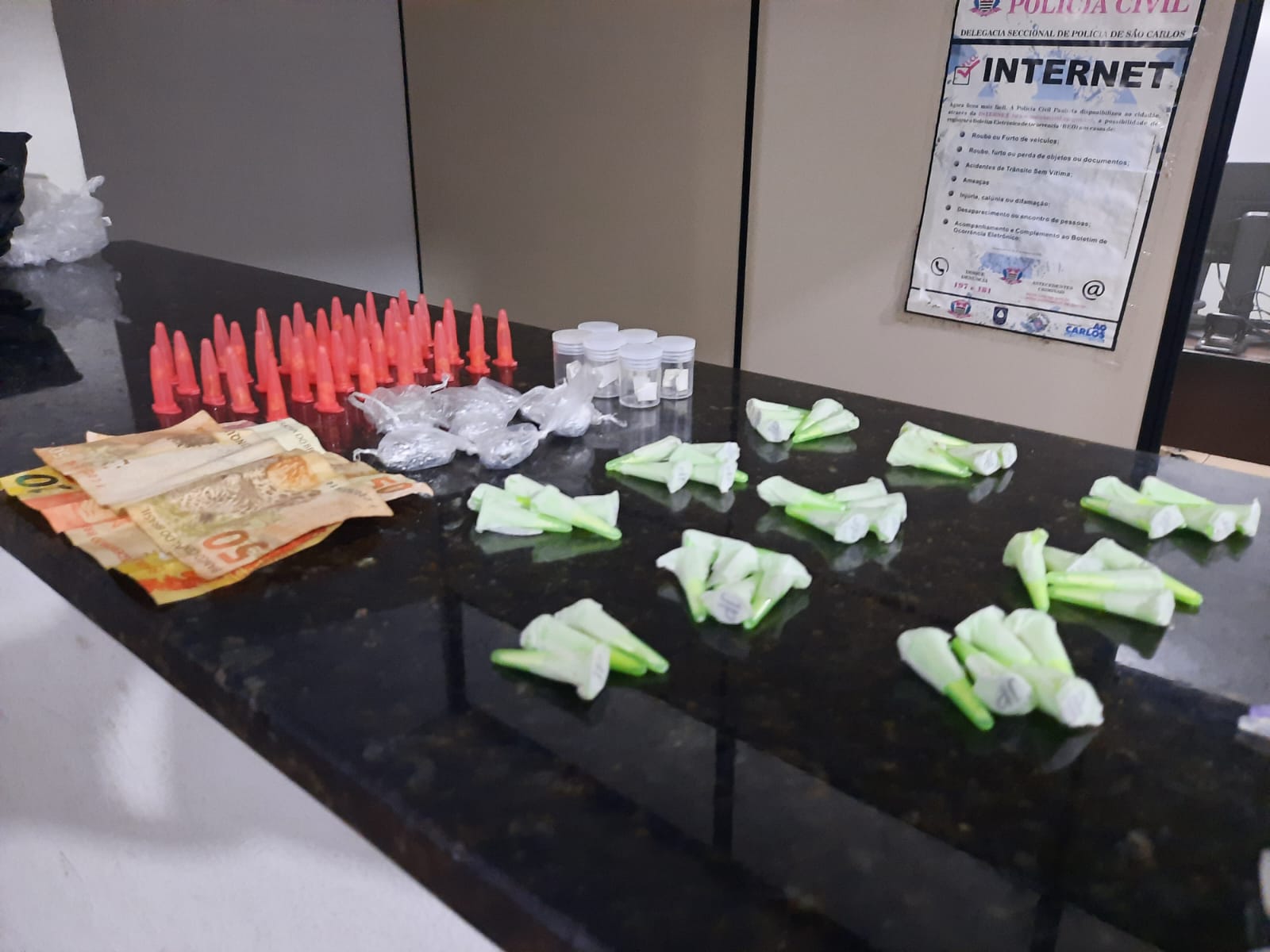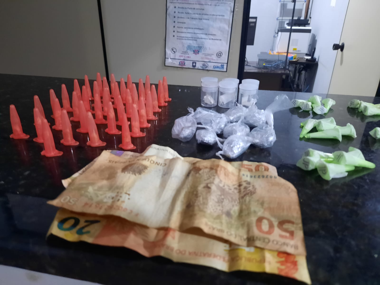 De acordo com boletim de ocorrência, a PM foi acionada no local para atender uma desinteligência e nas proximidades onde estava ocorrendo a confusão, os policiais avistaram L. M. S, de 20 anos, o qual tinha algo na cintura e tentou esconder. Ele foi abordado e em revista pessoal, foram localizados drogas e dinheiro. O meliante confessou que os entorpecentes seriam para seu uso próprio. Diante da situação, ele foi conduzido para a Central de Polícia Judiciária, onde foi autuado em flagrante pelo delegado, Dr. Gilberto de Aquino e recolhido ao Centro de Triagem de São Carlos.