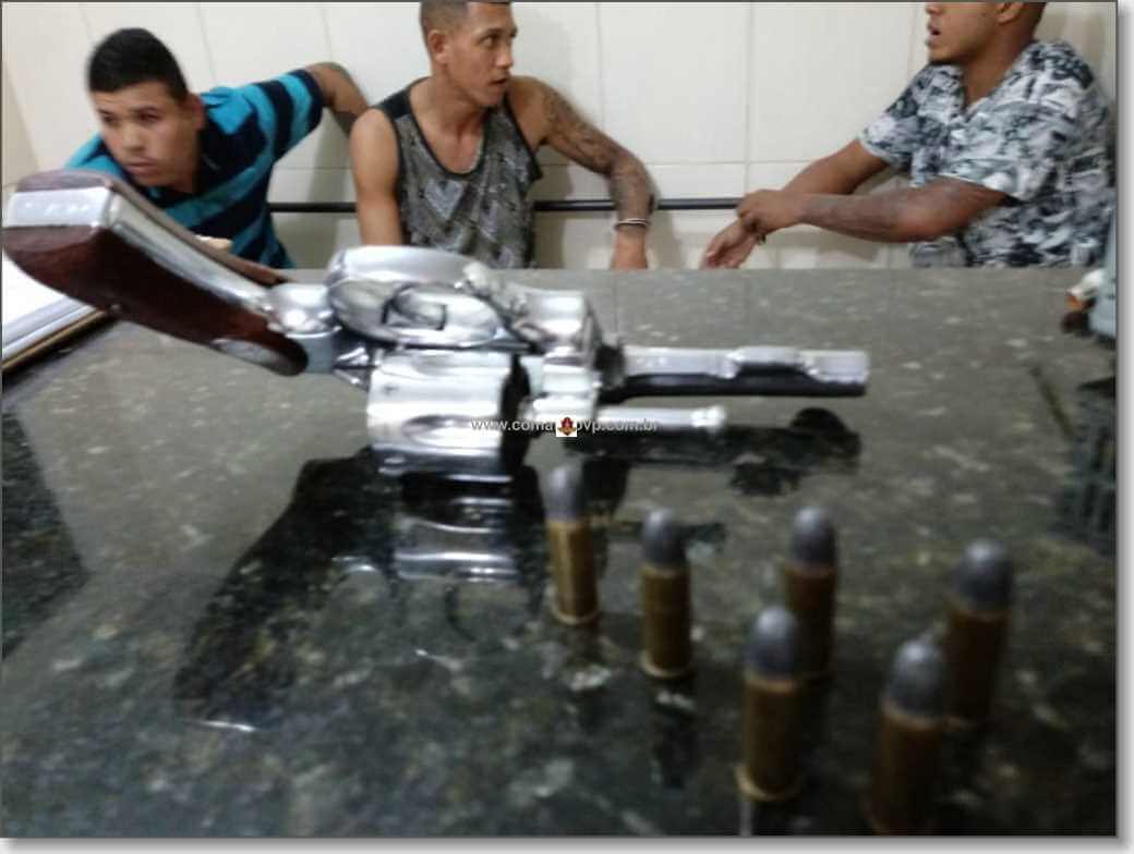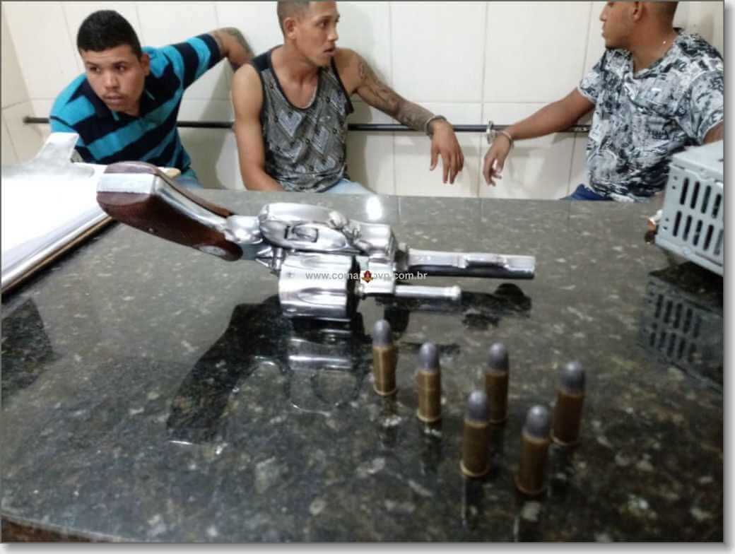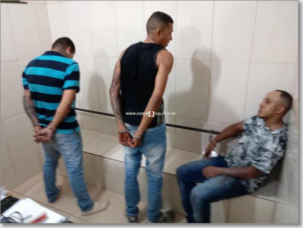 Ainda de acordo com o capitão, um indivíduo chegou a sacar de uma arma para atirar contra aos policiais, mas todos acabaram detidos. Elivelton Henrique Melo do Carmo, de 22 anos, Marcos Felipe Dantas da Silva, de 18 anos e Caio Gustavo Dantas da Silva, de 20 anos, foram encaminhados ao Plantão Policial onde está neste momento sendo apresentada a ocorrência ao delegado, Dr. Caio Iberê Gobato.