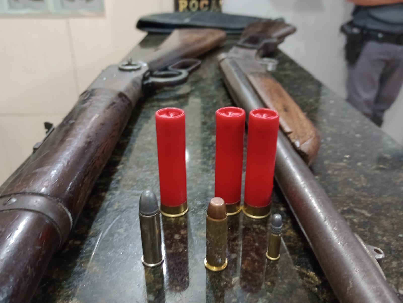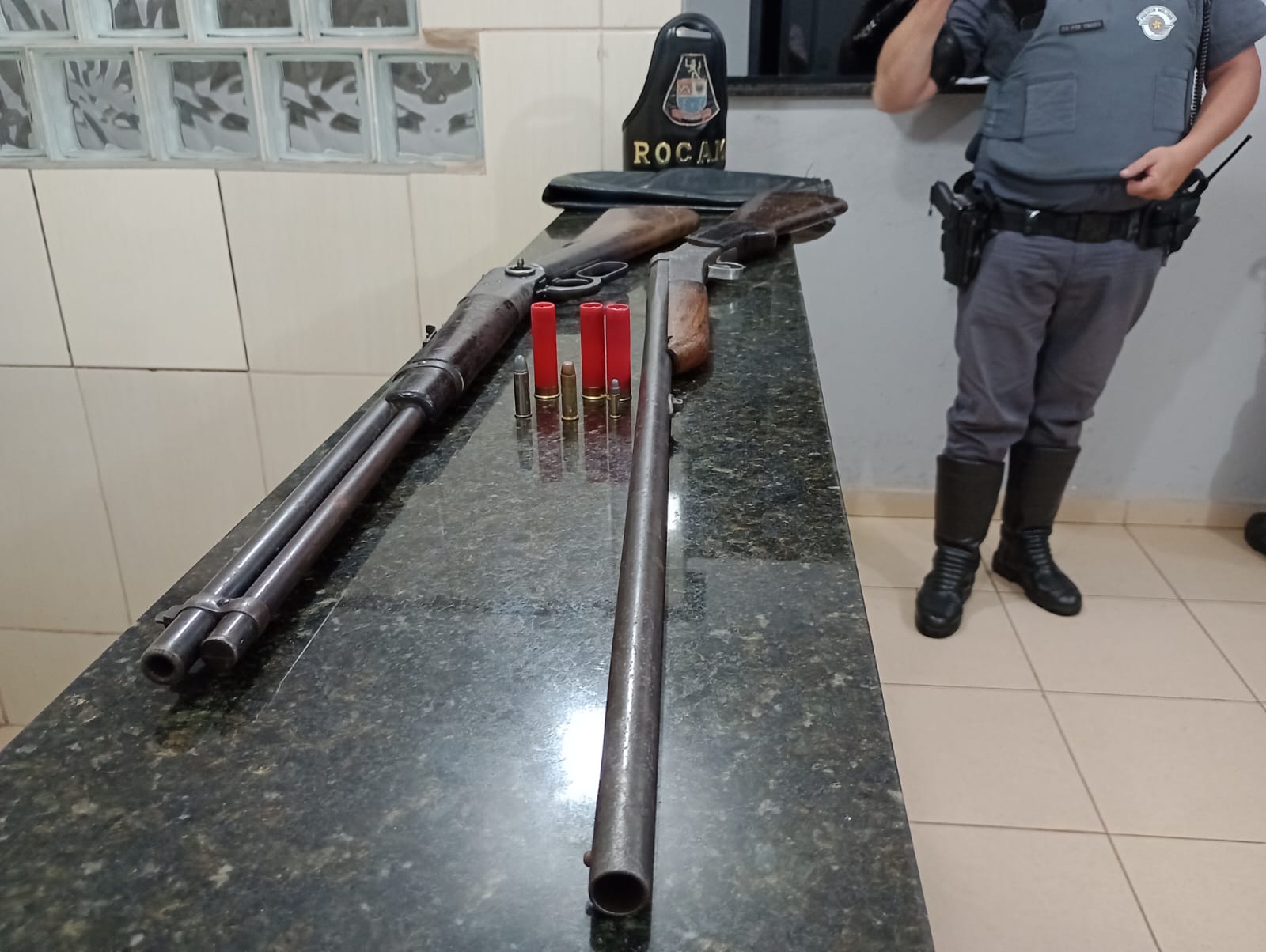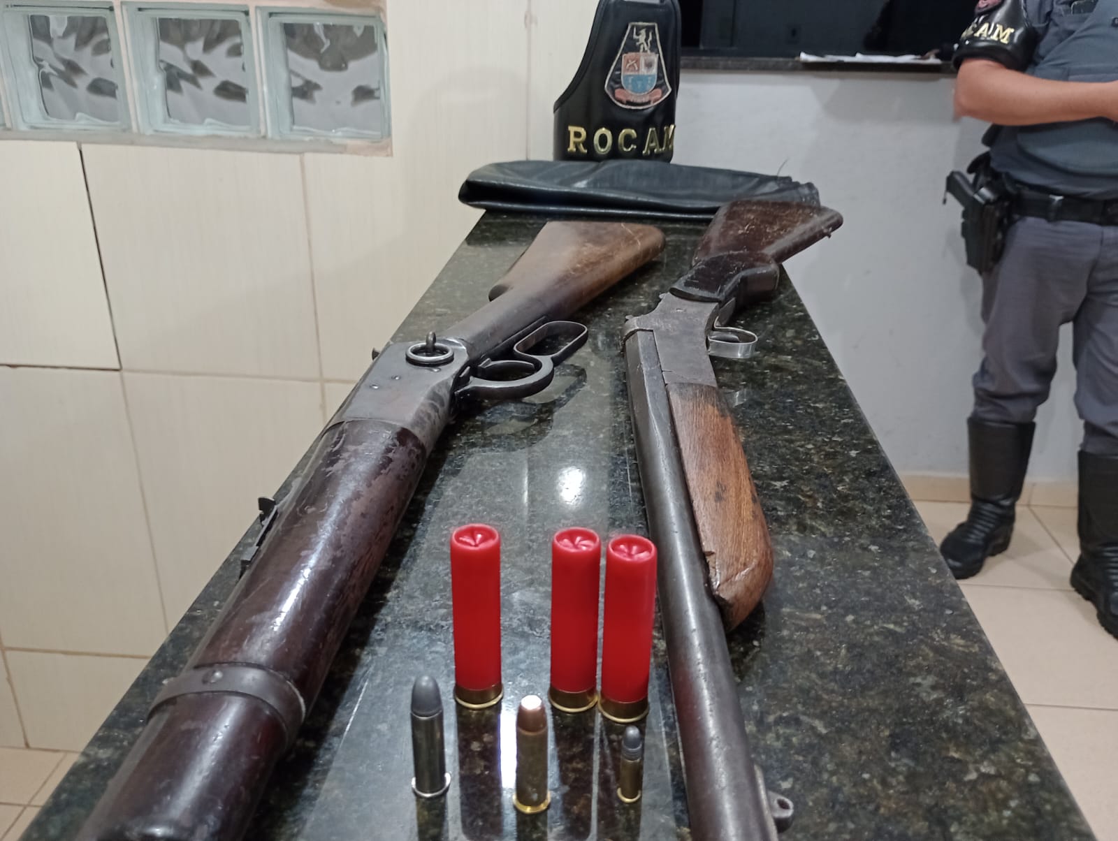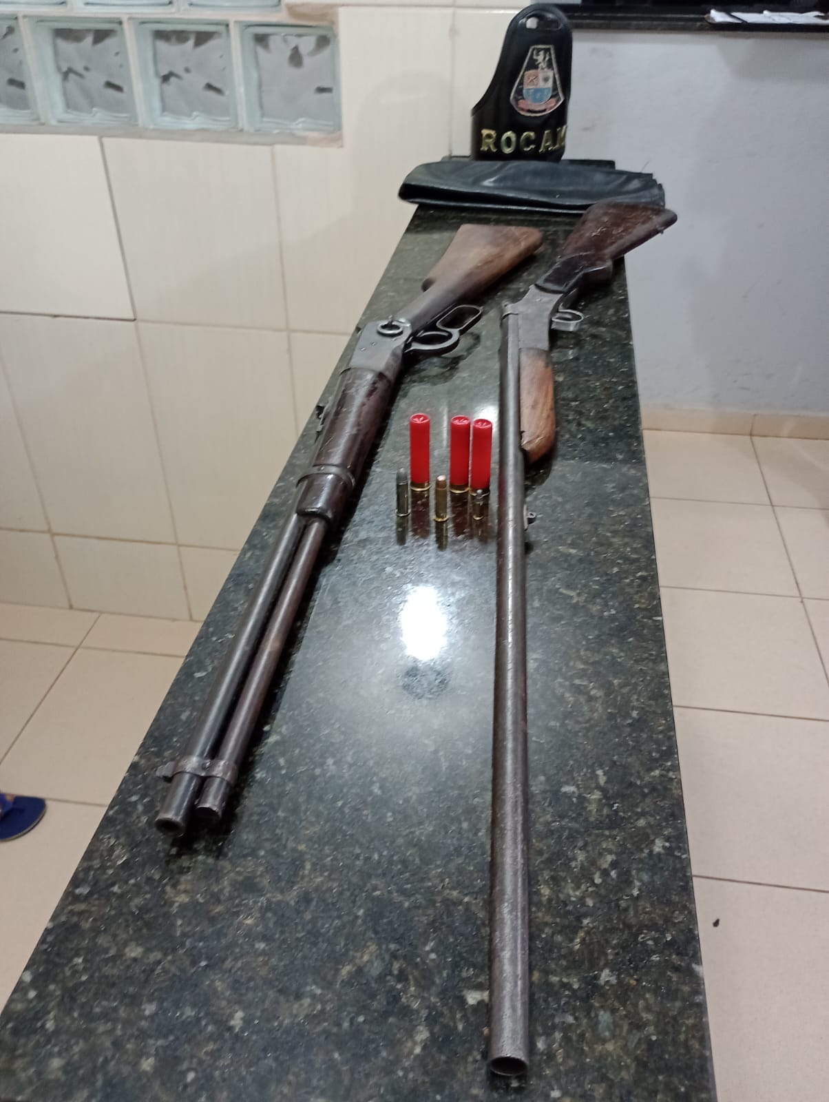 De acordo com informações preliminares, as equipes da Força Tática e ROCAM estavam em operação saturação pelo referido bairro, quando abordaram um indivíduo. Com o mesmo foram localizados drogas. Ao ser indagado, o mesmo confessou que tinha arma em sua casa. Um segundo suspeito foi detido. Duas espingardas foram apreendidas. A ocorrência esta sendo apresentada neste momento na Central de Polícia Judiciária.