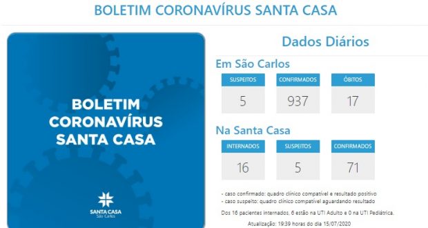 *INTERNADOS POR COVID-19 NA SANTA CASA SÃO CARLOS – 15/07/2020*