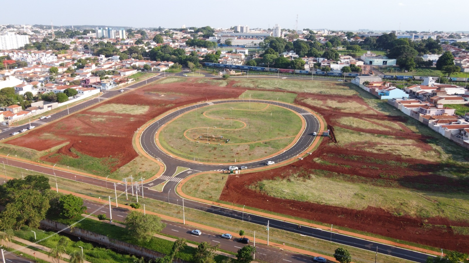 O espaço público que reúne rotatória, gramado, iluminação e playground teve custo de R$ 3 milhões (recurso privado de contrapartida da construtora CP Construplan) e integra o empreendimento Parque dos Lilases.