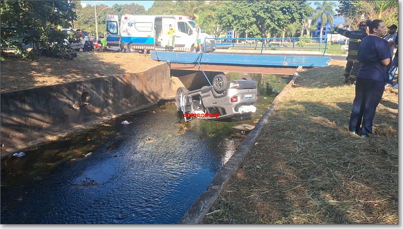 De acordo com informações, um jovem de 24 anos transitava com sua caminhonete no sentido Iguatemi/Terminal Rodoviário, quando teria dado sinal para mudar de faixa e acabou colidindo na traseira do Jeep Renegade. Com a batida, o JEEP caiu no córrego. O casal que estava no JEEP foi socorrido por uma ambulância que passava pelo local e encaminhado para a UNIMED. Aparentemente o casal estava levemente ferido.