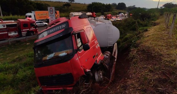 O carro trafegava pela faixa adicional da via quando invadiu a pista contrária e acabou colidindo com a carreta. Com o impacto, o caminhão invadiu o acostamento e caiu do lado oposto à pista.