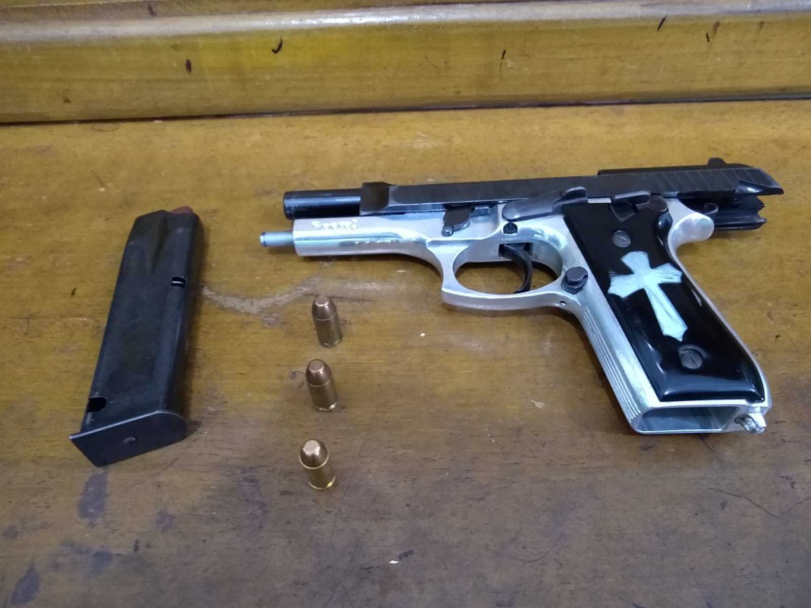 No momento da prisão foi apreendida uma pistola “ponto 40” com a numeração suprimida com três munições intactas.
