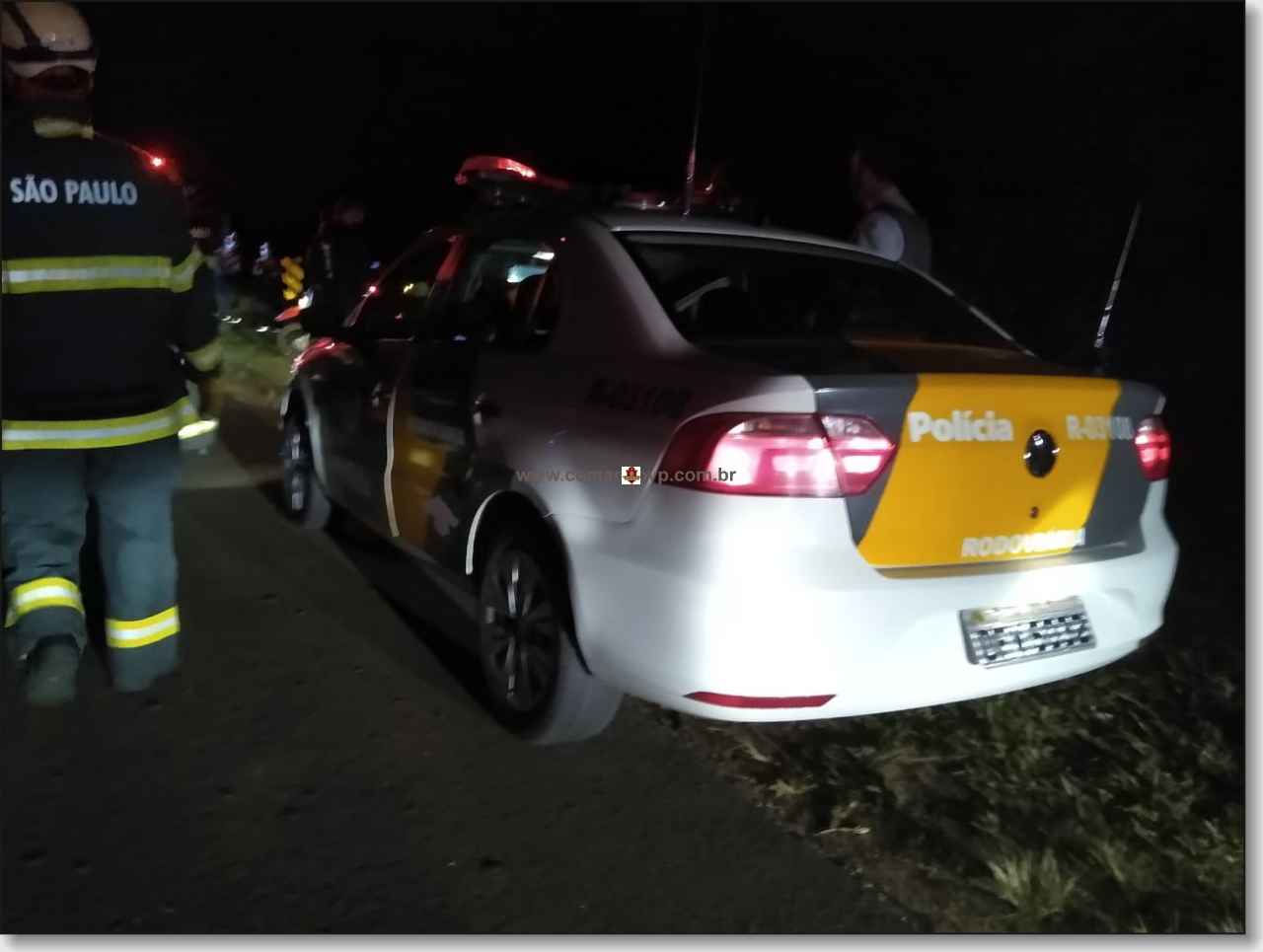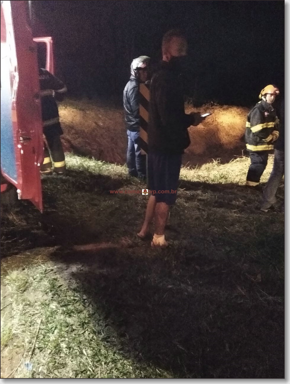 Um veículo caiu em uma valeta nesta noite de segunda-feira, 21 de junho de 2021, após capotar no km 147 + 800m da rodovia Professor Luiz Augusto de Oliveira( SP-215), São Carlos-SP.