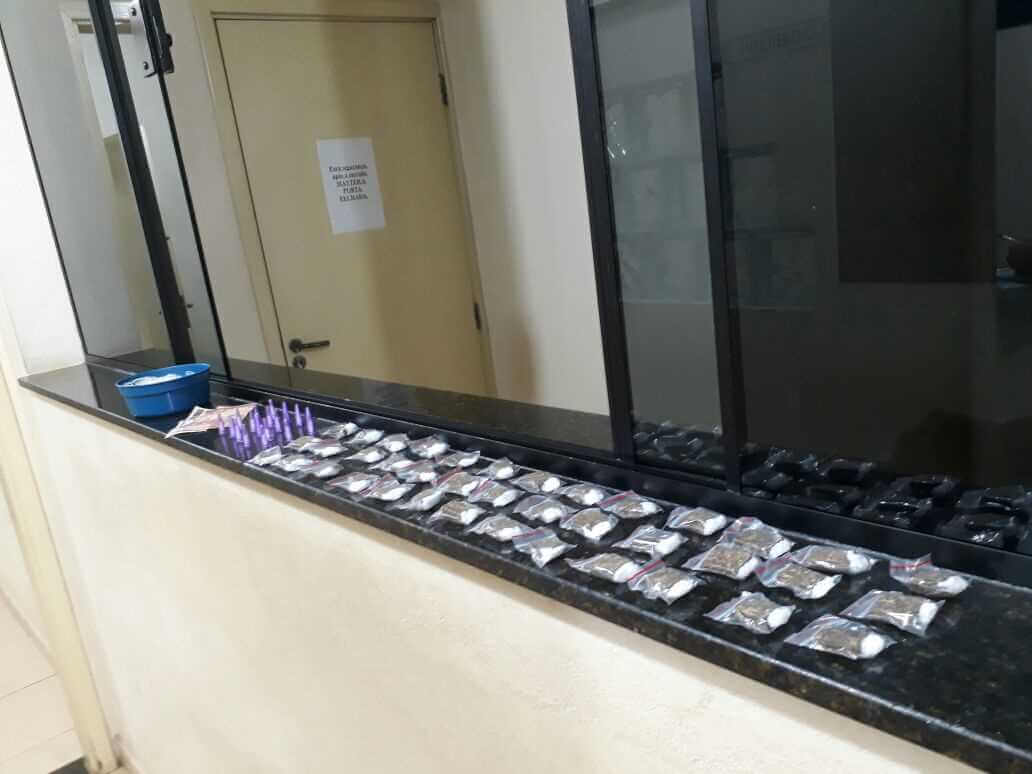 Segundo boletim de ocorrência, o flagrante ocorreu por volta das 20:15. Ezequiel Antônio. F. B, de 19 anos, foi abordado pela Força Tática e no seu bolso foram localizados seis pinos aparentemente com cocaína, seis porções de maconha e R$ 20,00.