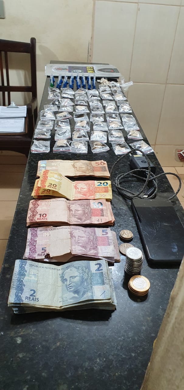 Segundo informações, a GM estava em averiguação, quando avistou o jovem M. H. M, de 18 anos. Este empreendeu fuga sentido a SP-318, sendo abordado na altura do km 238. Com o mesmo foi localizado uma sacola (preta) contendo R$ 576,30, 35 pedra de “crack” (09gramas), 50 invólucro de “maconha” (92gramas) e 37 eppendorfs de “cocaína” (30gramas).